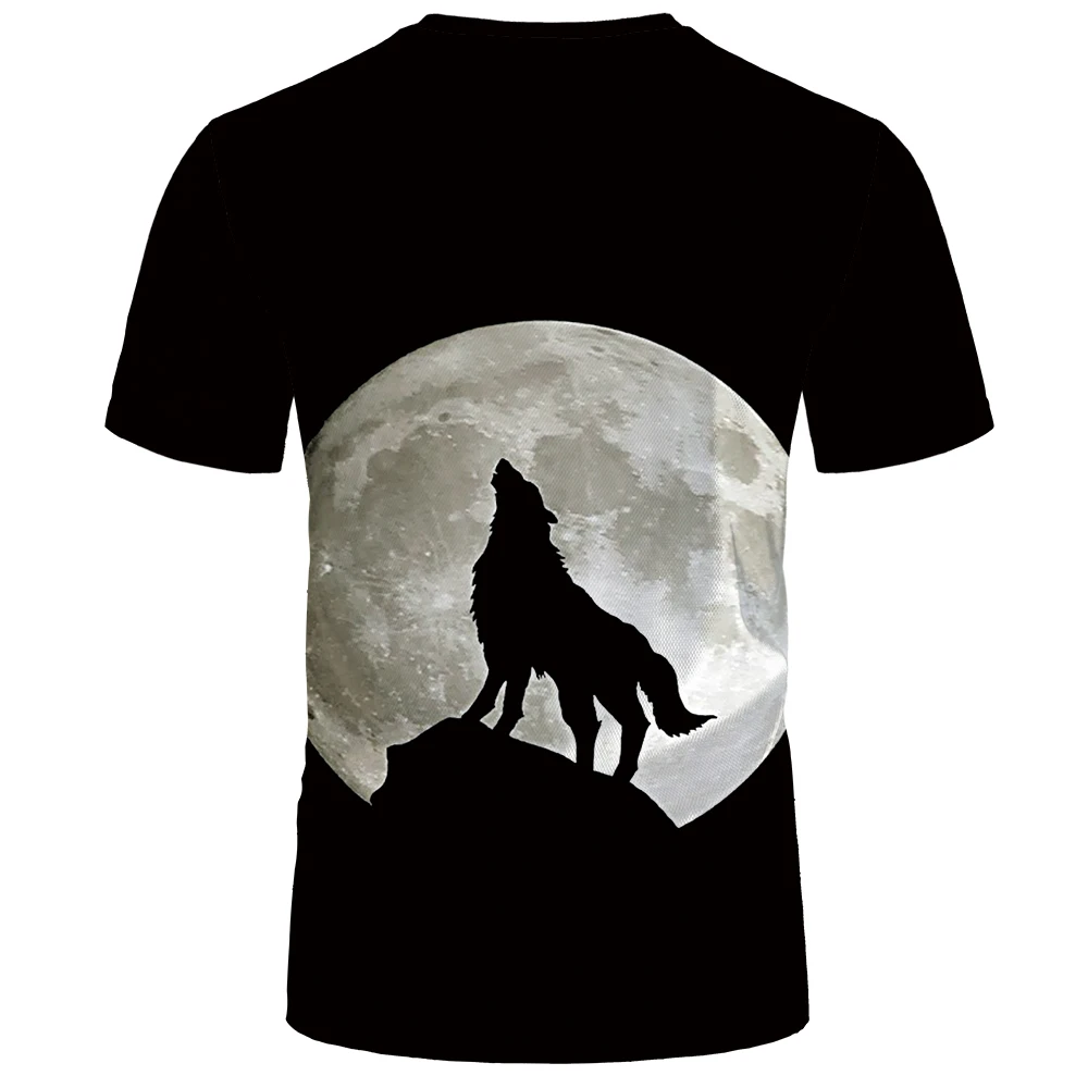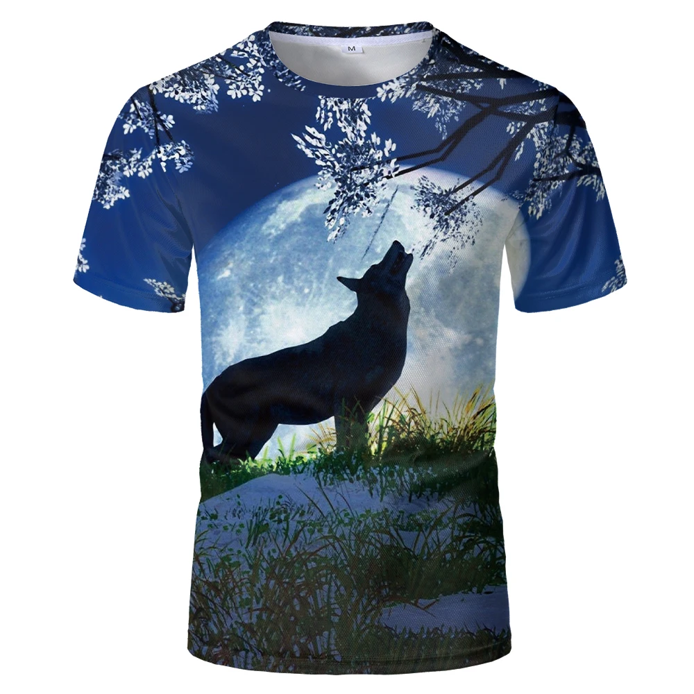 Мужская футболка с 3D-принтом волка в ночное время, новинка 2020, м...