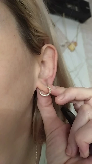 Заказала 2 пары 8мм, и по 1 парке 10 и 12. Продавец положил ЕЩЕ по 1 паре 8мм и 12!!! СПАСИБО! Обычно, при замыкании, тонкая дуга не входила в отверстие, приходилось изощряться пока не поломаешь ухо. С этими сережками всё просто! достаточно слегка его зажать и оно само защёлкивается! без усилий! нацепила 2 колечка, очень довольна.