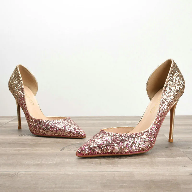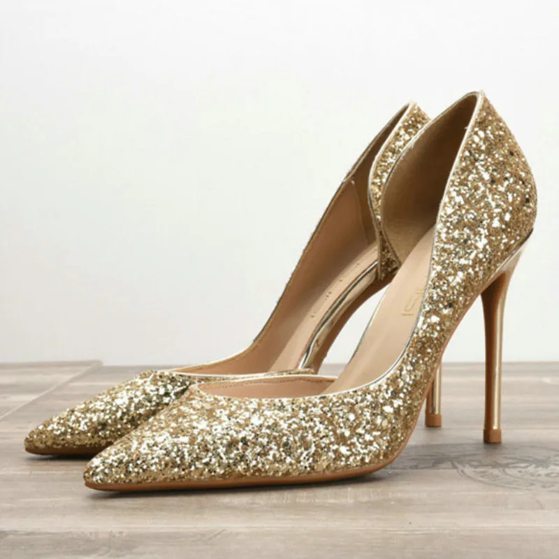Роскошные блестками Высокое туфли-лодочки на каблуке Красочные Bling Туфли под платье; Туфли на шпильке; Женские туфли-лодочки с блестящими блестками