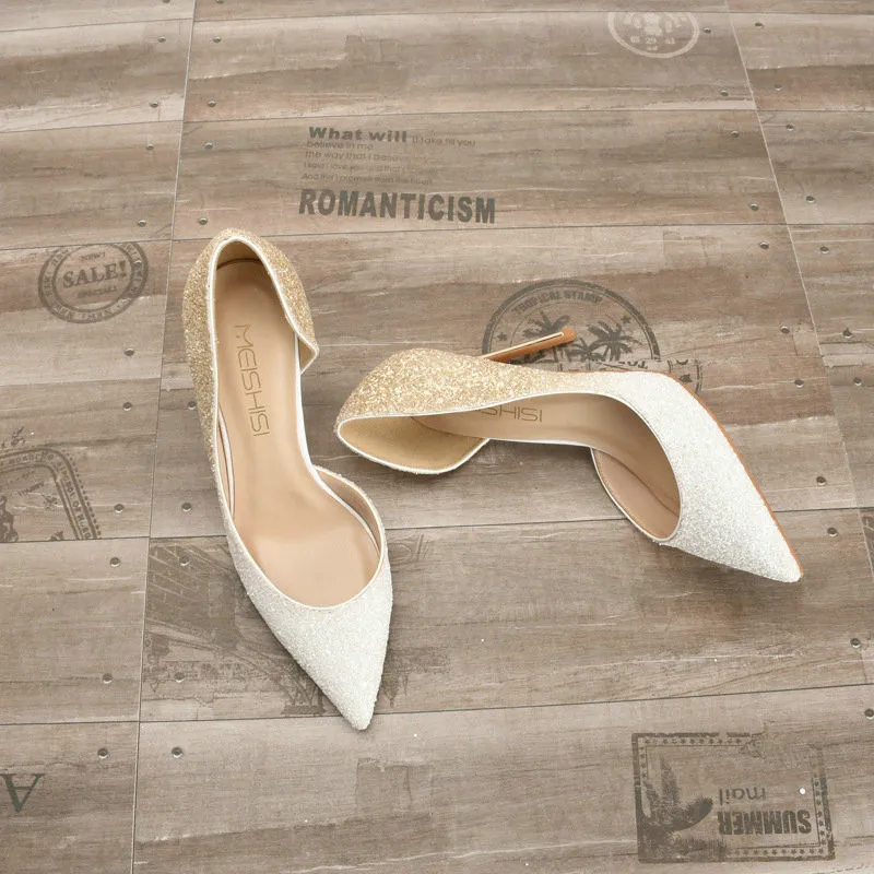 Женские туфли с острым носком, серебристые туфли на высоком каблуке...