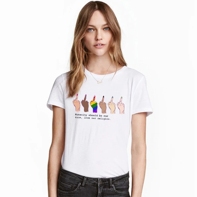 Модный показ-JF Humanity должна быть наша раса, любовь к нашей вере, против расовых различий, футболки для ЛГБТ, средний палец