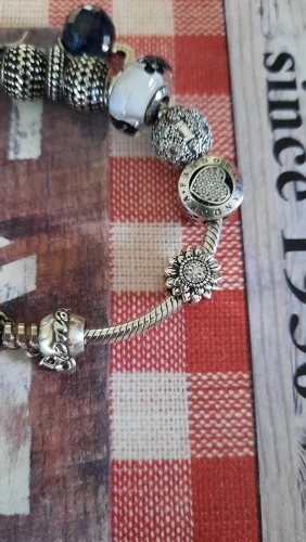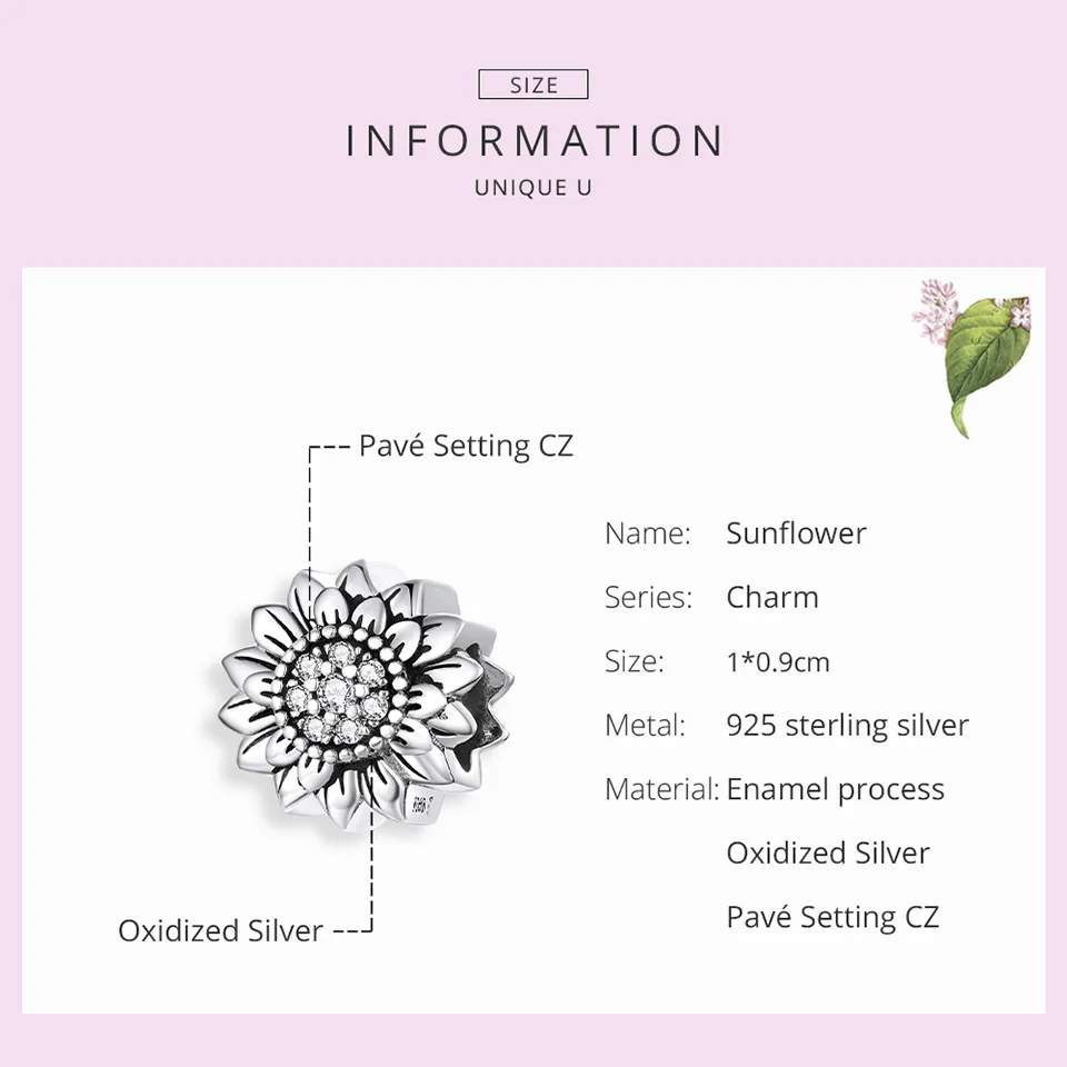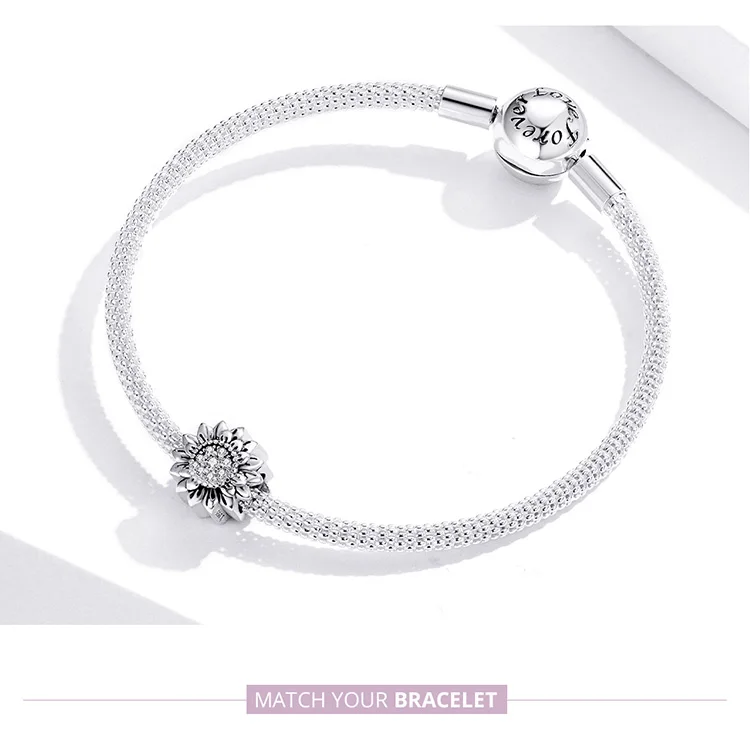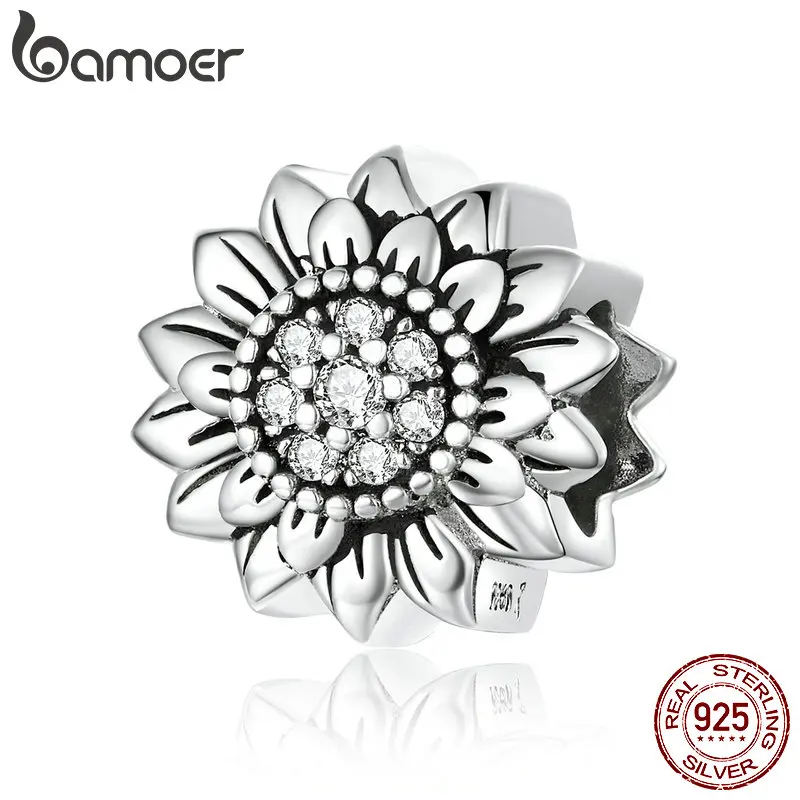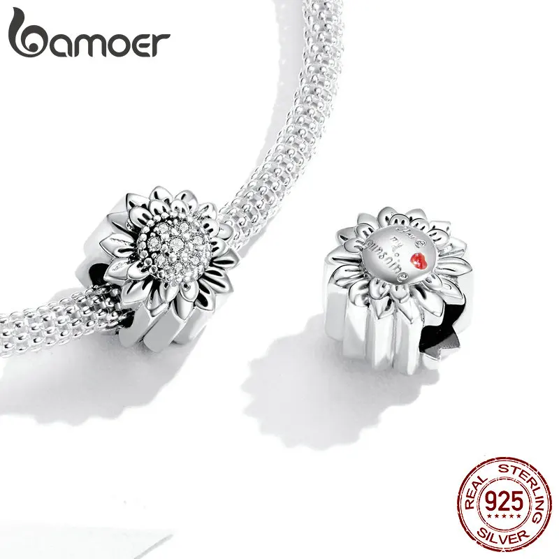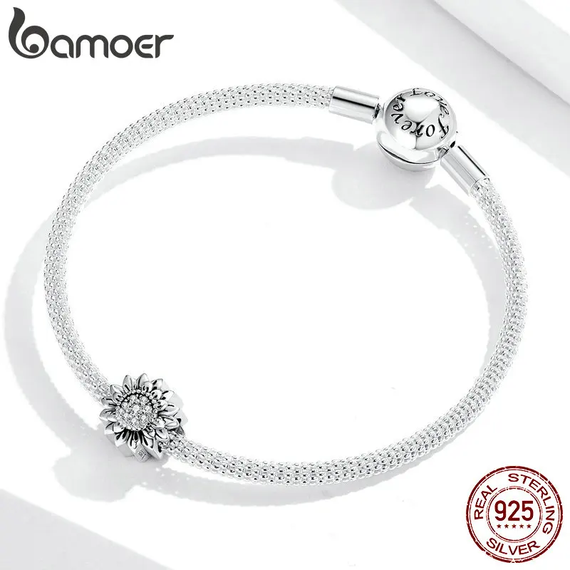 Bamoer металлические бусины с подсолнухом для женщин, ювелирное изделие из стерлингового серебра 925 пробы, очаровательный оригинальный браслет под змею или браслет SCC1507