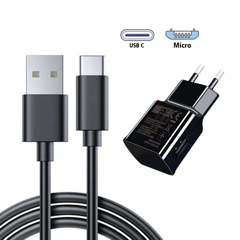 Кабель для быстрой зарядки с разъемом Micro USB Тип C, 5 В, 2,4 А, настенный адаптер для зарядки в ЕС для Samsung Galaxy A30, S10, S7, M30, M20, M10, J4, A9s, J2, J3, J5, J7
