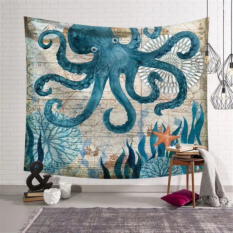 Настенный гобелен в виде черепахи-осьминога, хиппи, гобелен для пляжа и йоги, гобелен в виде морских животных, гобелен в виде мандалы, настенный гобелен