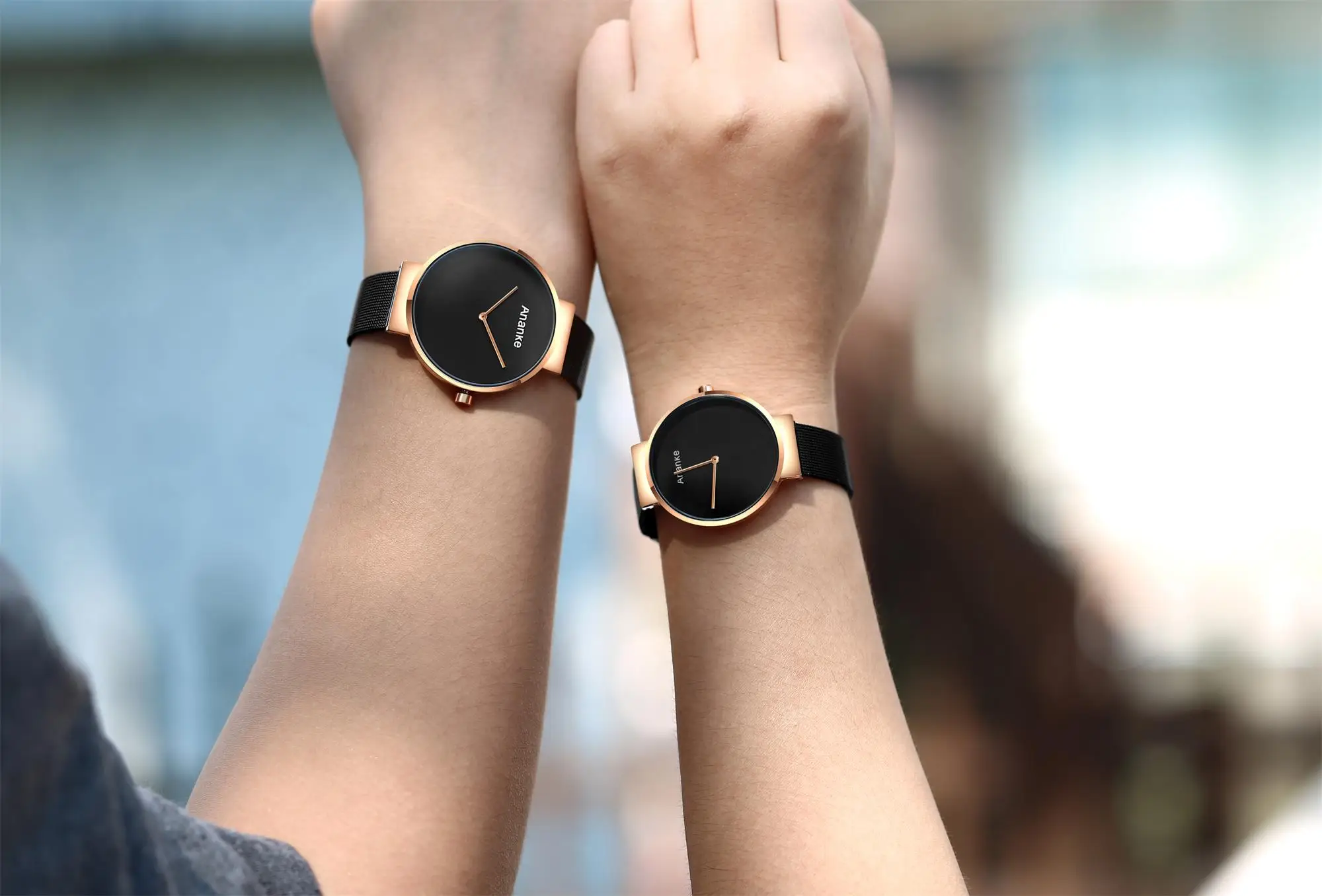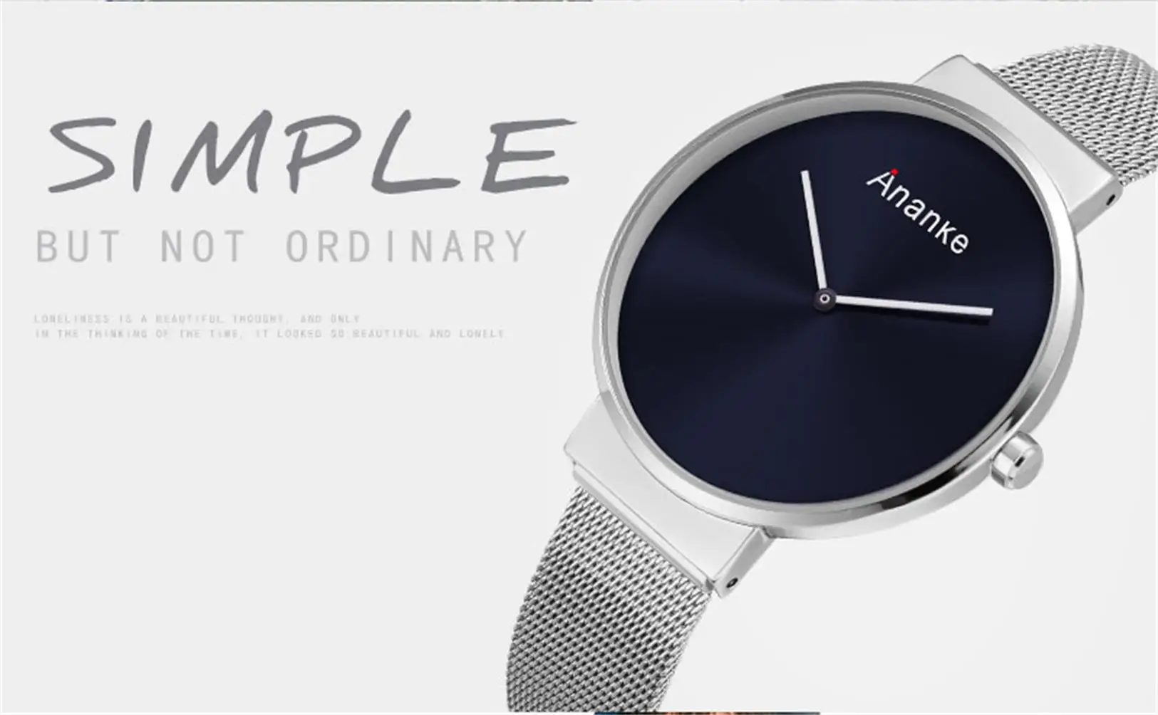 Часы Ananke мужские ультратонкие, простые водонепроницаемые кварцевые с браслетом из нержавеющей стали с сетчатым ремешком, с японским механизмом, пара, AN04