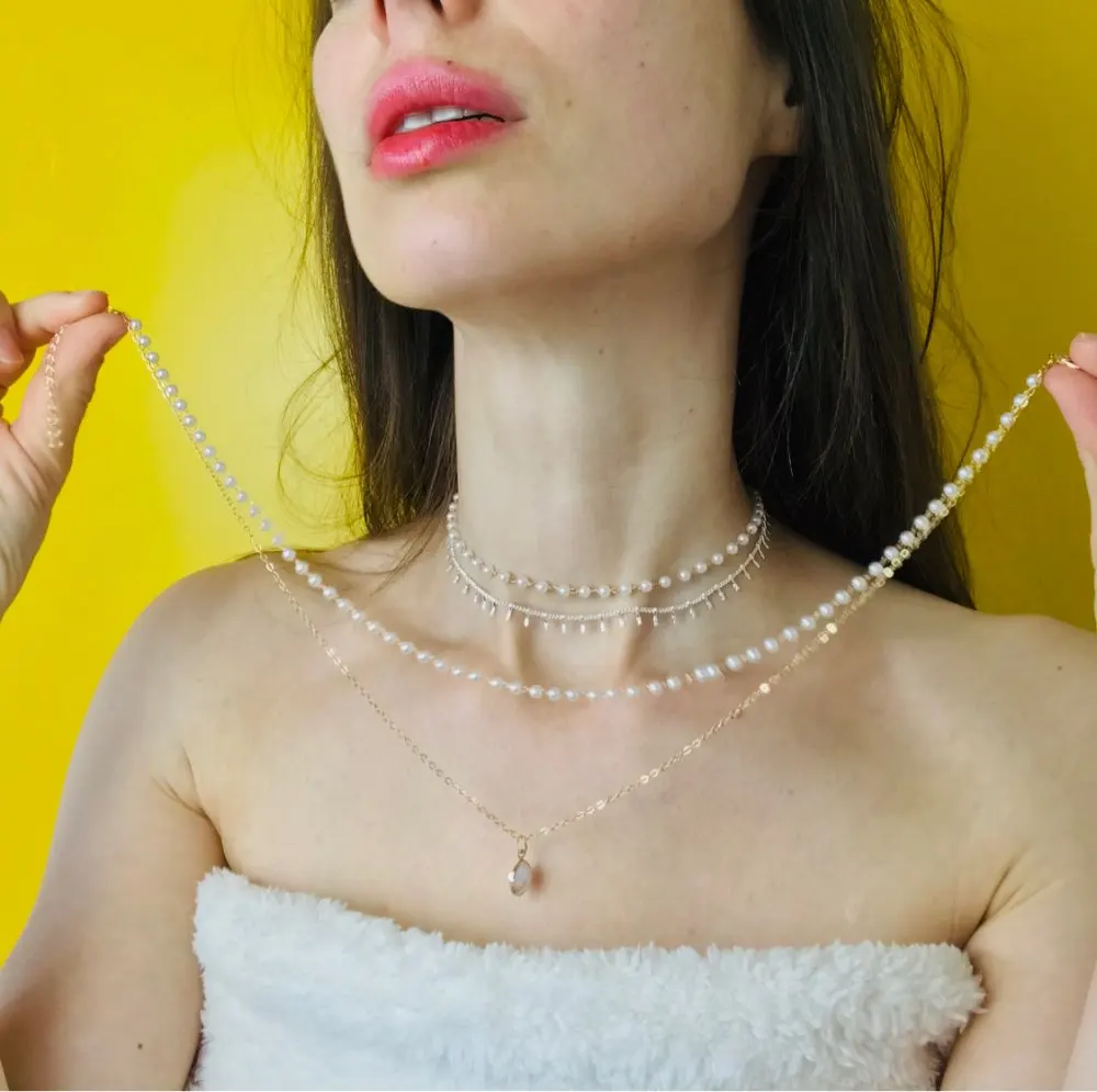 Тут и жемчуг, и кристаллы и эмаль. Разный дизайн - разное настроение. Люблю такие лёгкие цепочки, особенно когда их несколько красивыми слоями на шейке. Каждое колье продаётся отдельно. Доставка быстрая, трек отслеживается.