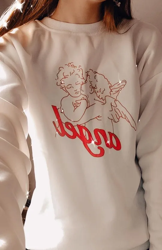 Женский свитшот с длинным рукавом, повседневный свободный винтажный свитшот с мультяшным принтом в стиле панк, с надписью Ангел, большие размеры, зима