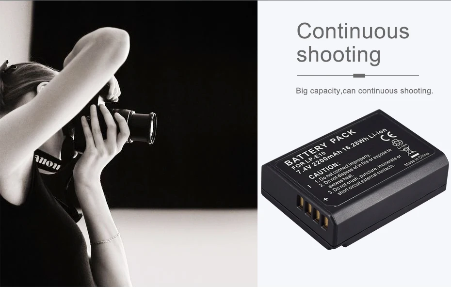 Для Canon EOS Rebel T3 Rebel T5 Rebel T6 Поцелуй X50 Поцелуй X70 EOS 1100D EOS 1200D EOS 1300D Особенности: 1. Литий-ионные аккумуляторы премиум класса 2. Высокая плотность энергии, долгий срок службы, без памяти 3. Дополнительная мощность, больше снимков для ваших камер