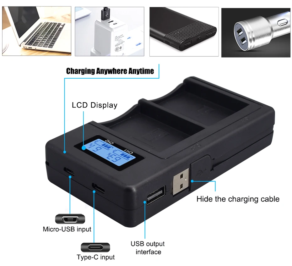 Зарядное устройство с двумя USB-портами и ЖК-дисплеем для камеры Ca...