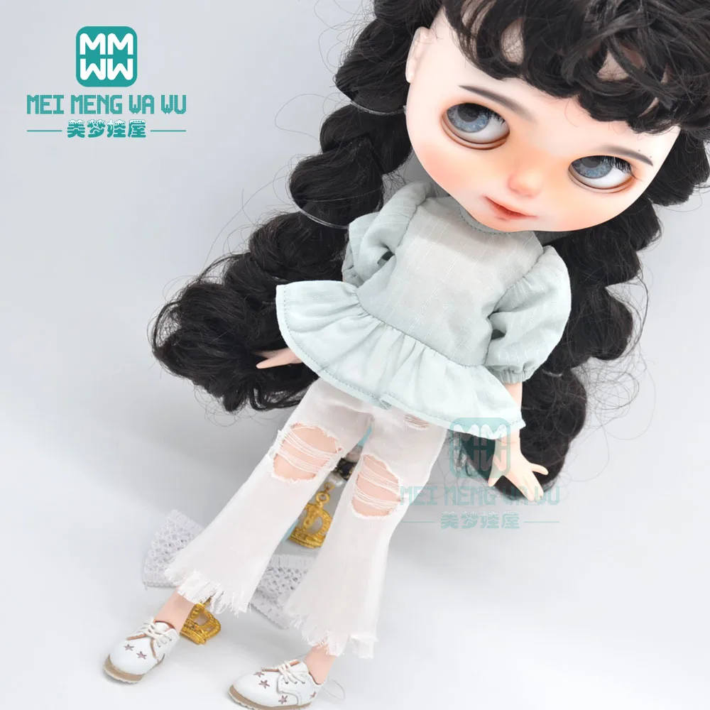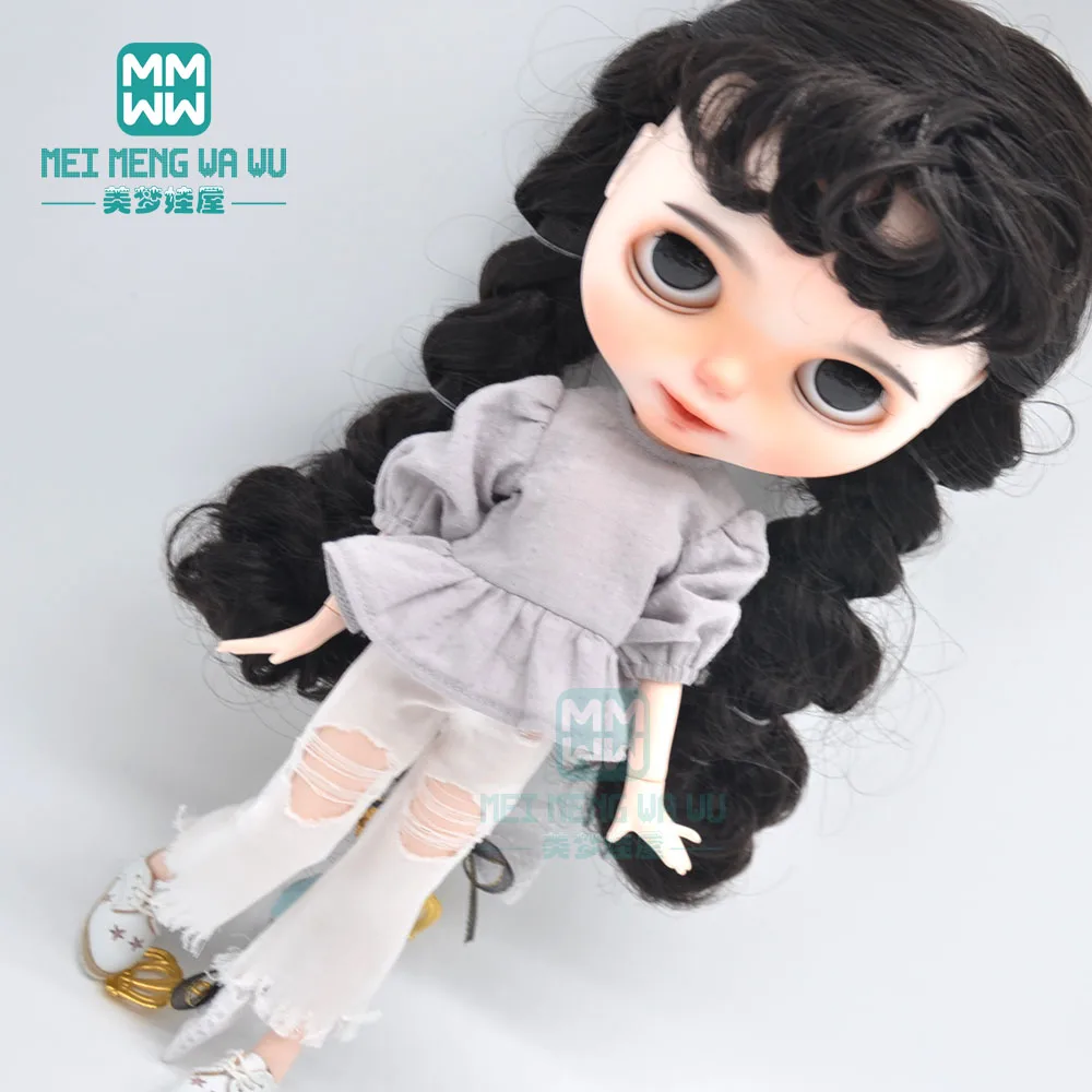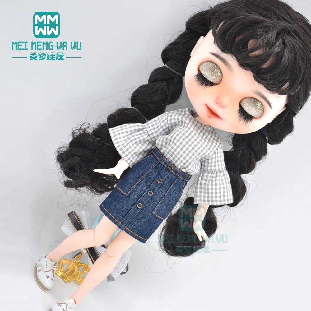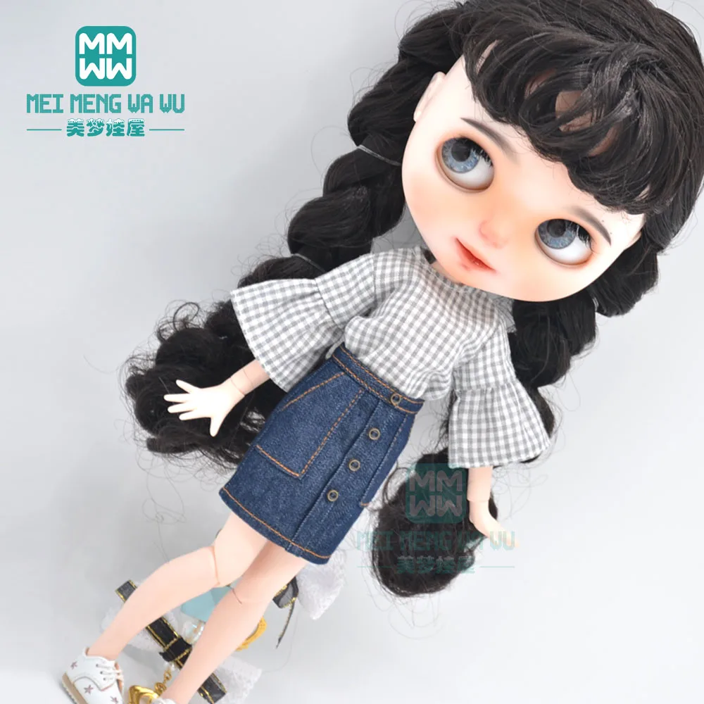 Одежда для куклы блайз, рубашка с рукавами-фонариками, клетчатая рубашка, джинсы, аксессуары для кукла Azone, 1 шт.