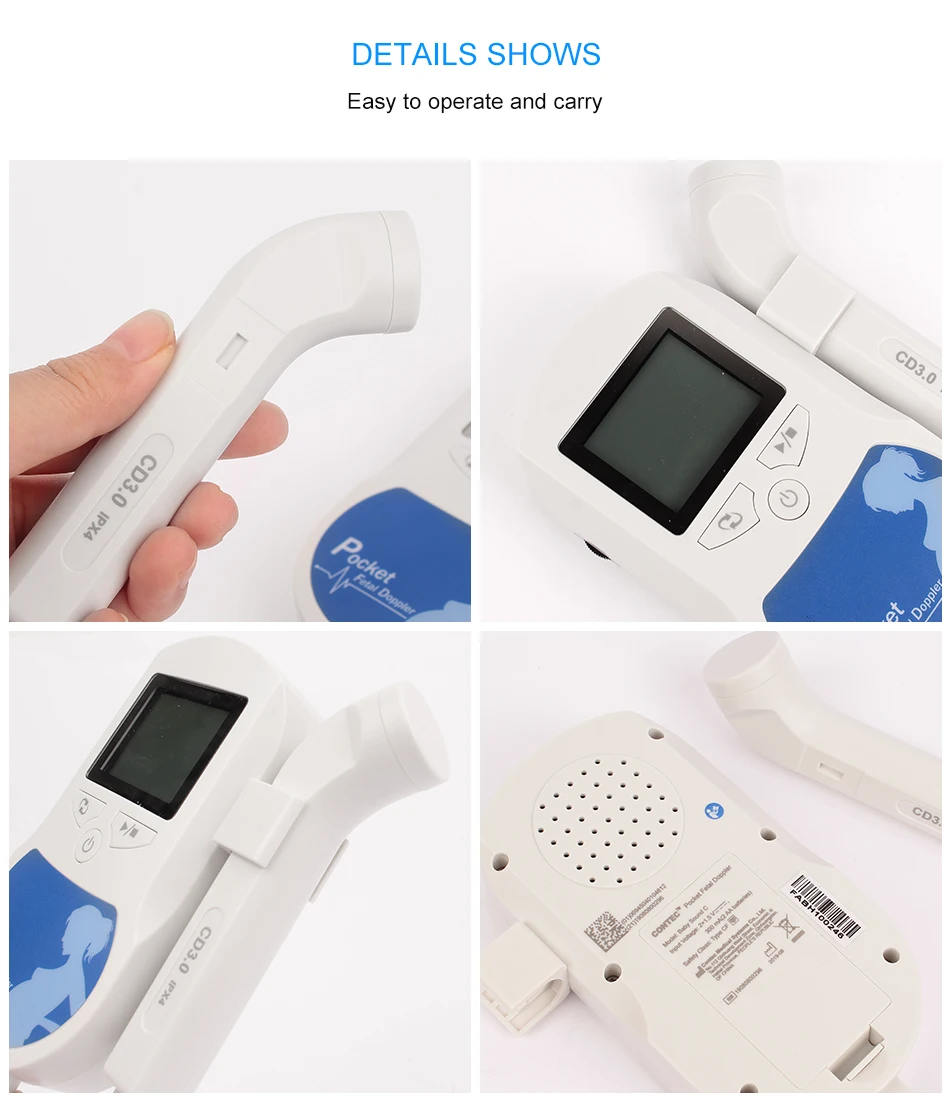 Фетальный допплер CONTEC 3 МГц зонд монитор сердечного ритма подсве...