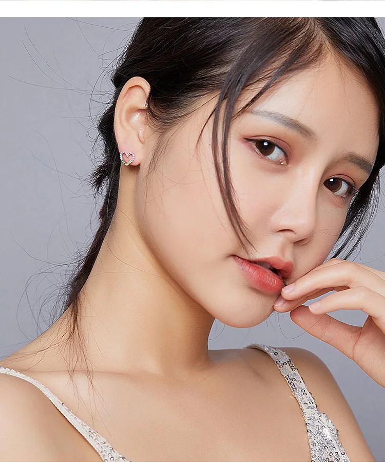 Женские серьги-гвоздики в виде РОЗОВОГО СЕРДЦА bamoer, серебро 925 пробы, радужные серьги-гвоздики, ювелирные изделия, подарок на день рождения SCE891