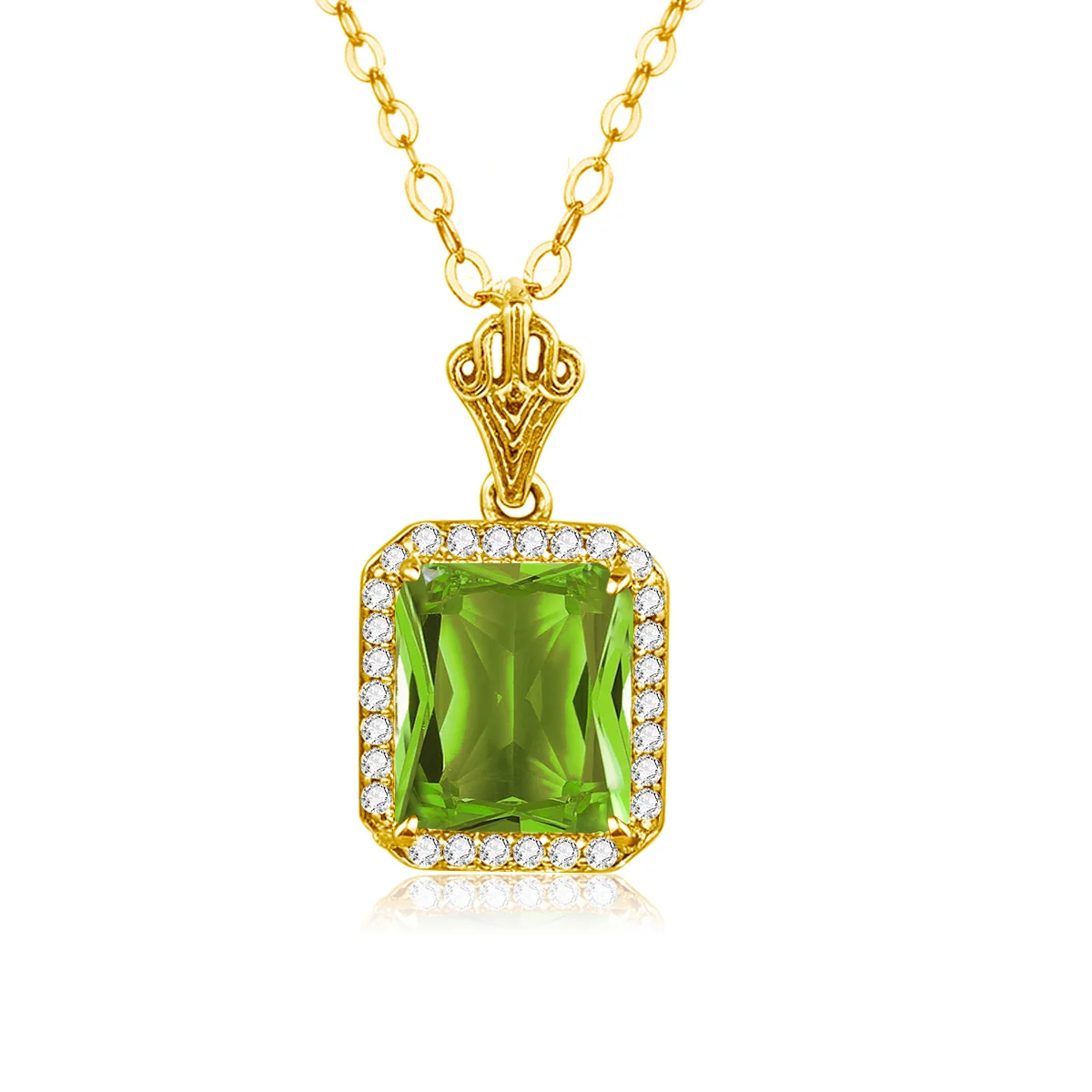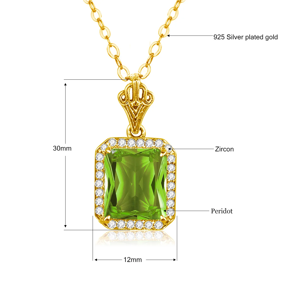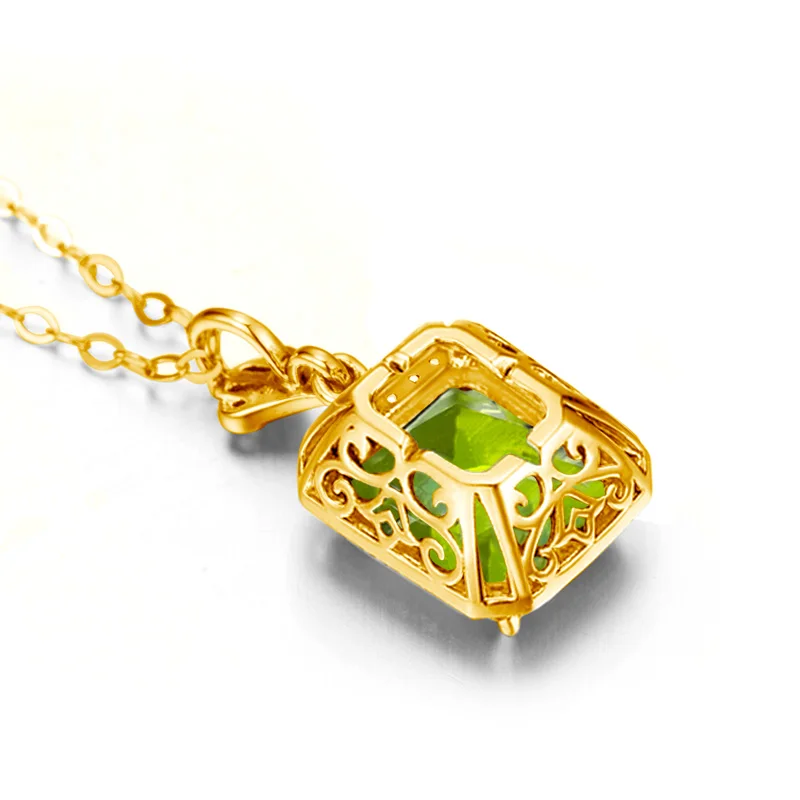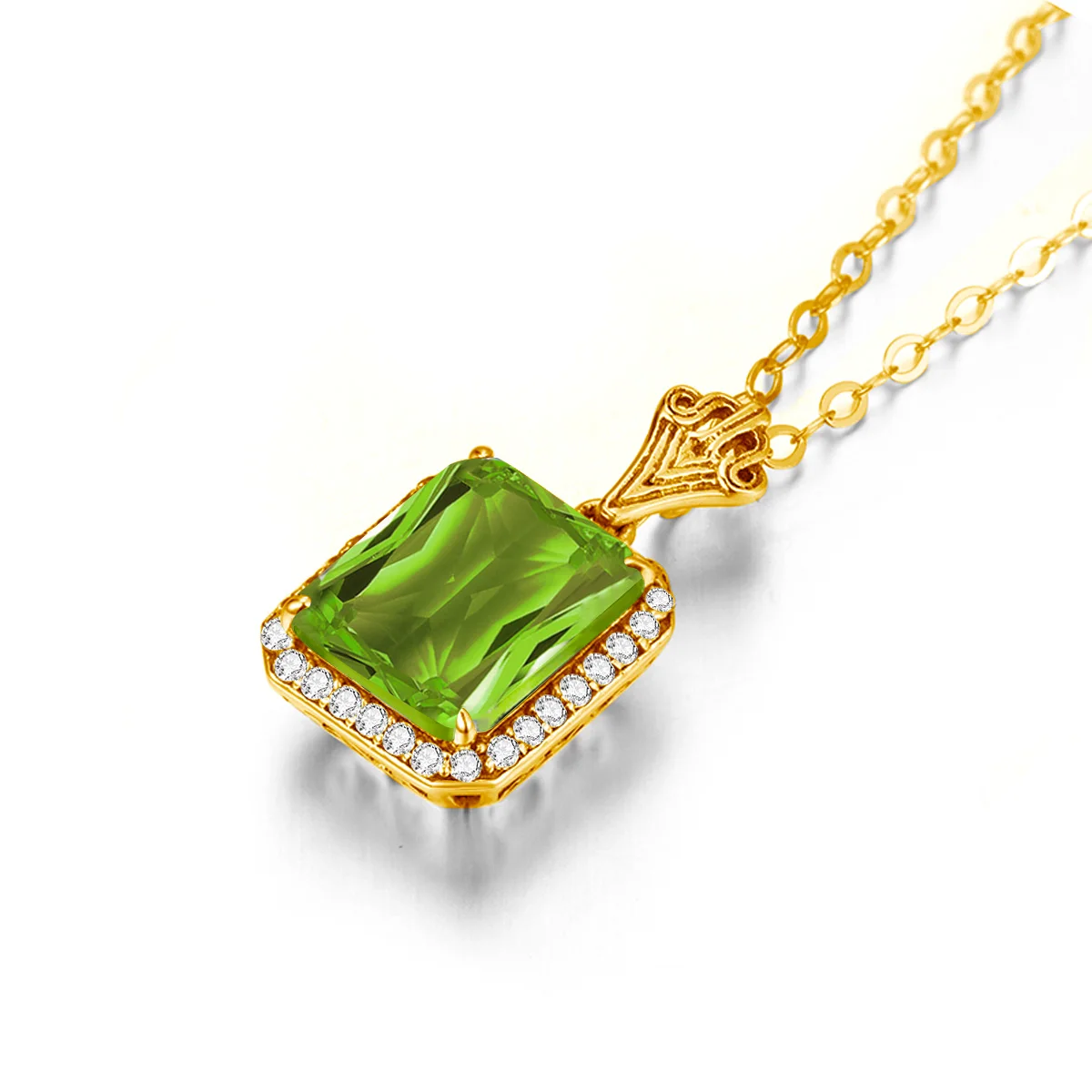 Ожерелье с подвеской для женщин, ювелирное изделие из драгоценного камня перидота с бриллиантом, золото 18 карат, квадратная форма, гравировка, женское серебро 925 пробы, ювелирные изделия, новинка