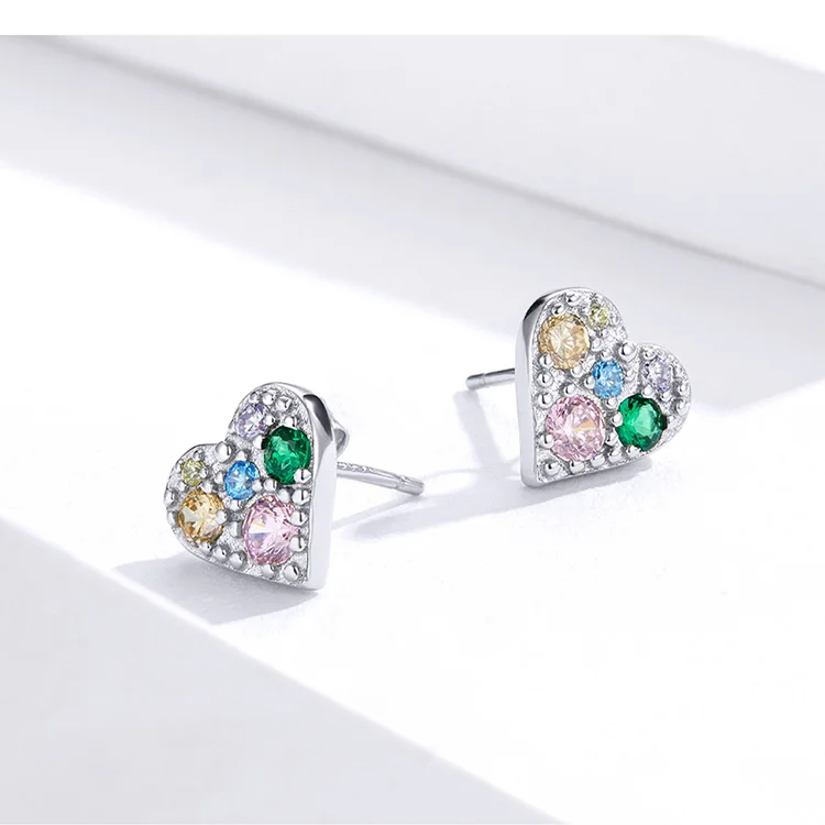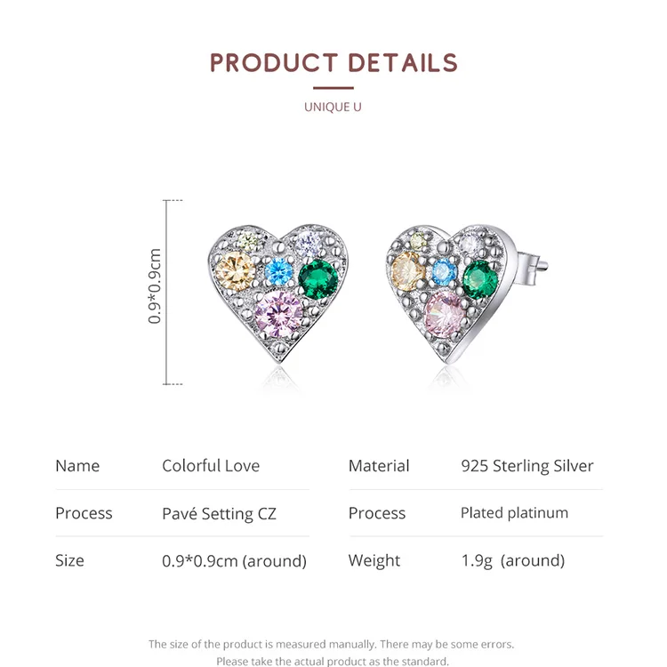Материал: S925 + покрытая платиной + паве установка CZ Размер: 0,9*0,9 см Описание: Простая форма сердца красива и полна красочных цирконов, показывая романтические ощущения.