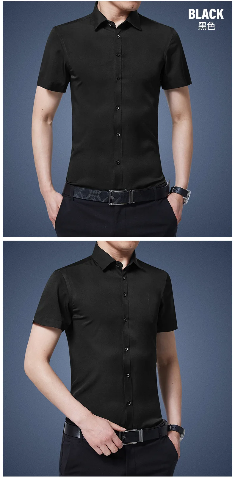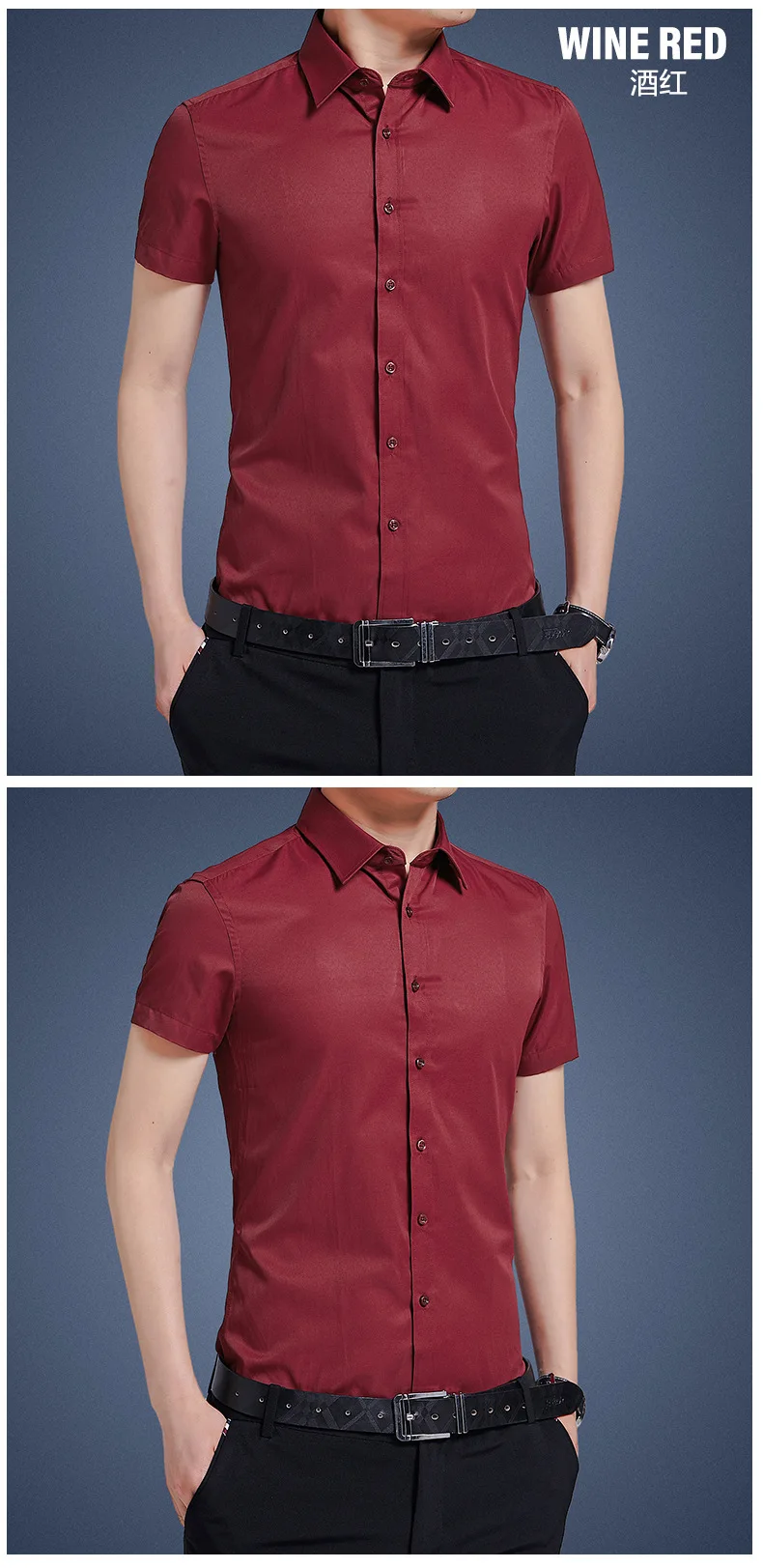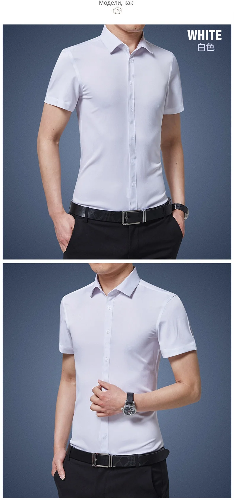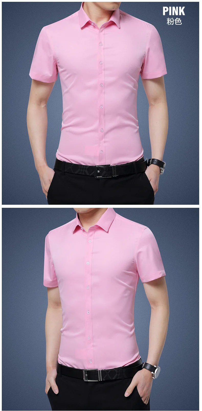Мужские облегающие повседневные рубашки с коротким рукавом, тонкие белые, черные, розовые, синие, красные мужские деловые рубашки большого размера 5XL