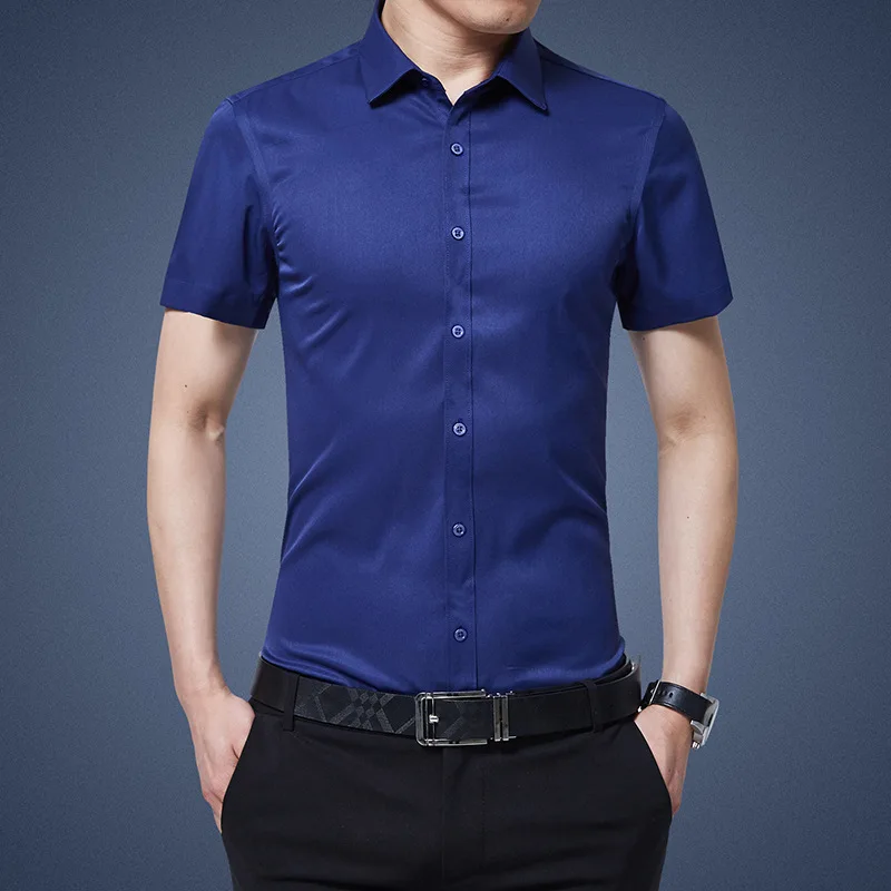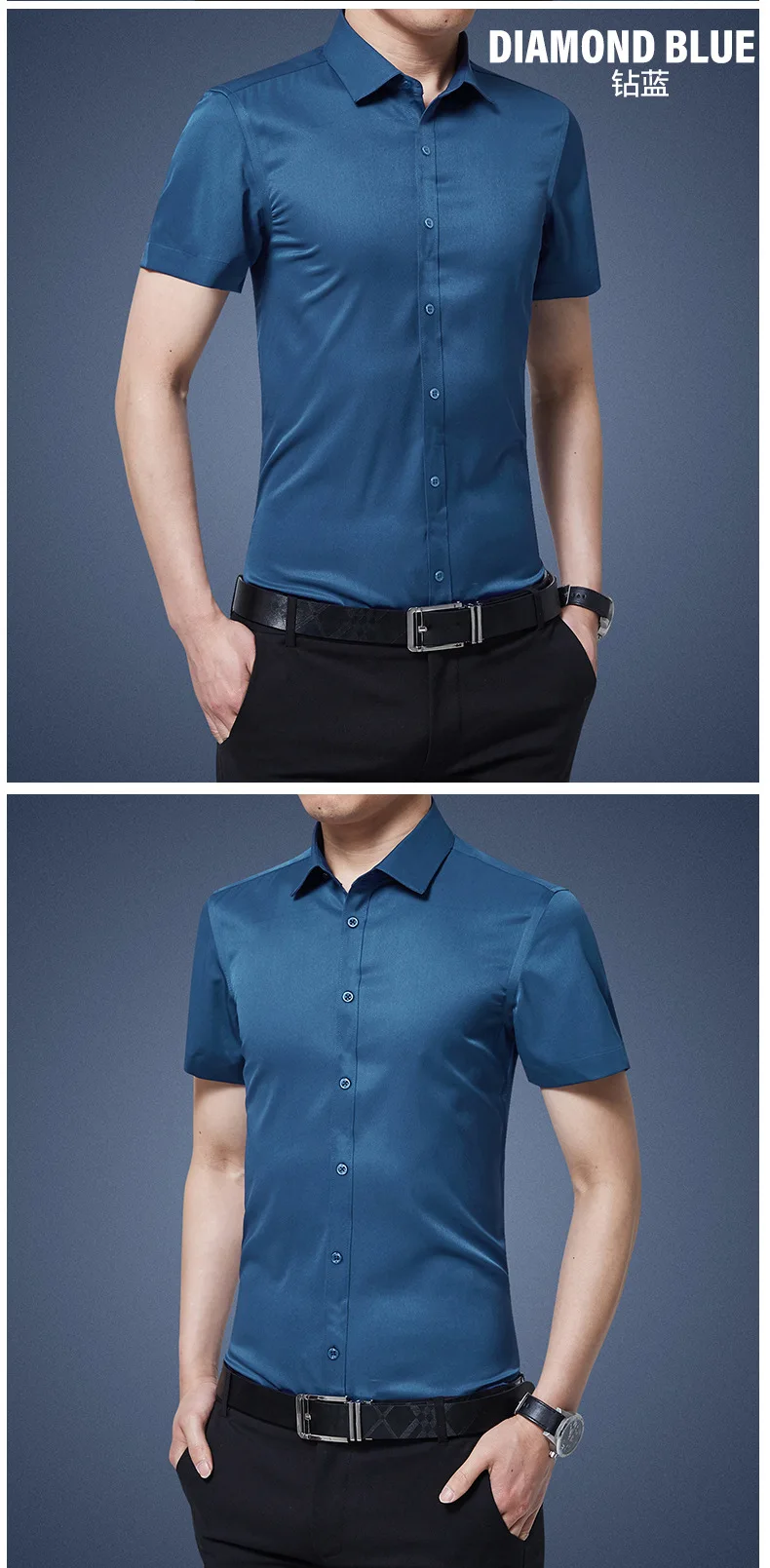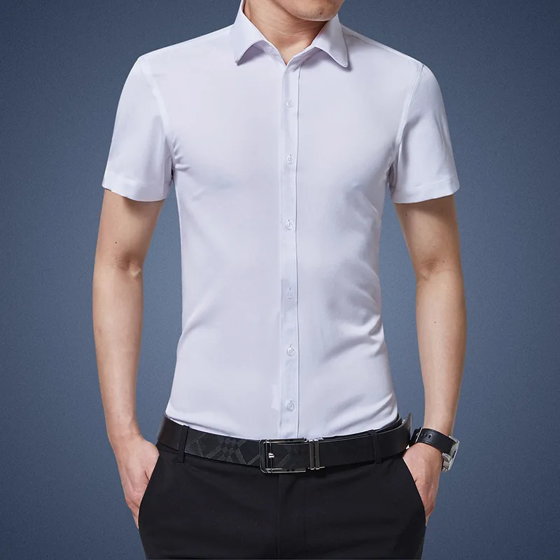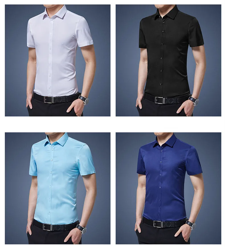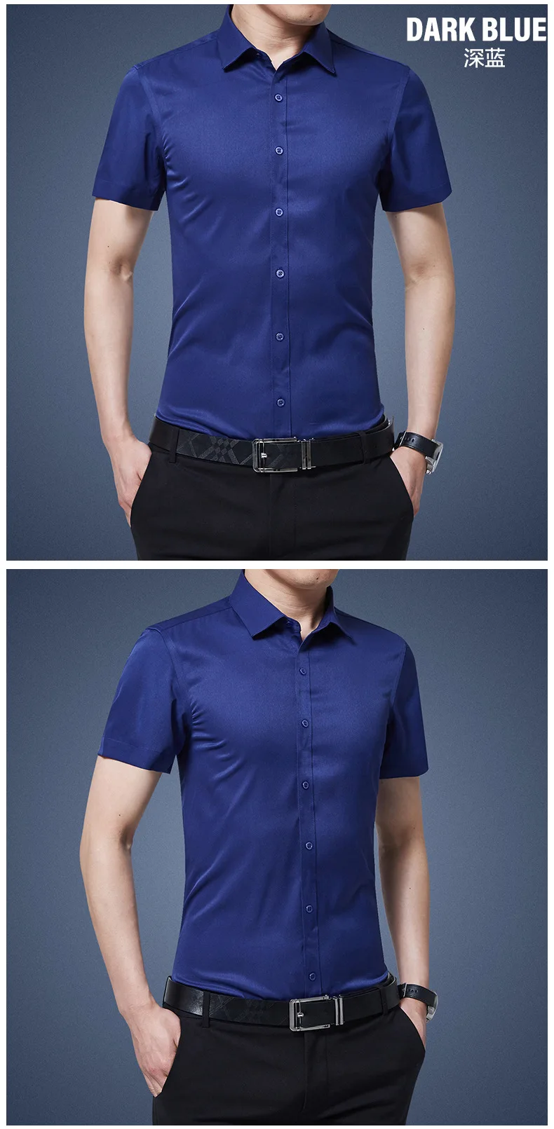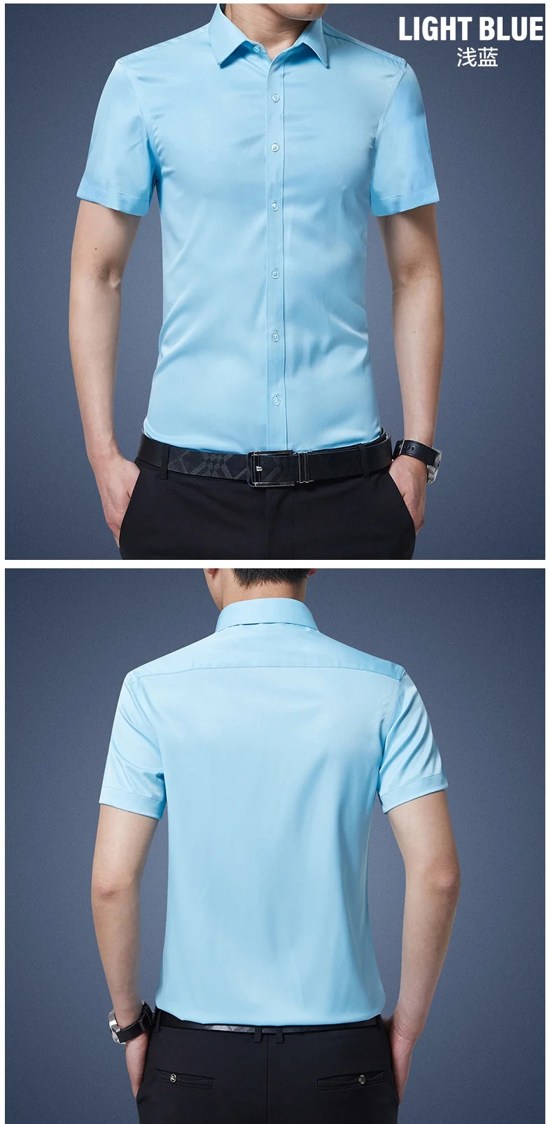 Мужские облегающие повседневные рубашки с коротким рукавом, тонкие белые, черные, розовые, синие, красные мужские деловые рубашки большого размера 5XL