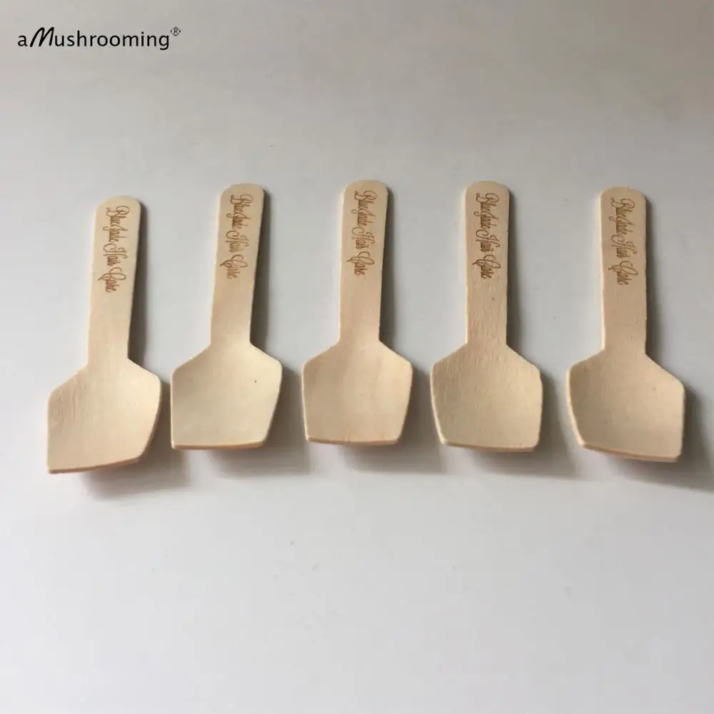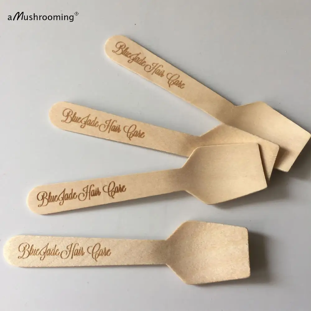 100 Выгравированные мини-ложки на заказ одноразовые деревянные ложки Косметика Уход за волосами посуда крем для лица скраб ложки Выбор шрифта