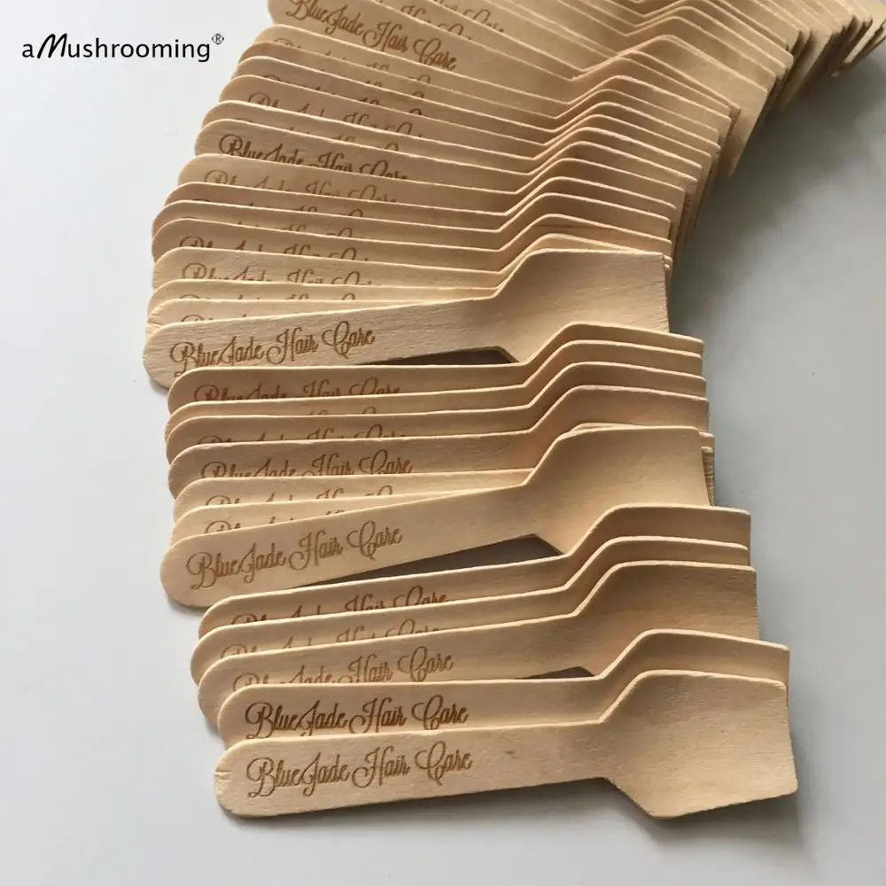 Одноразовые деревянные ложки с гравировкой на заказ, косметические принадлежности для ухода за волосами, крем для лица и тела, ложки-скрабы, выбор шрифтов