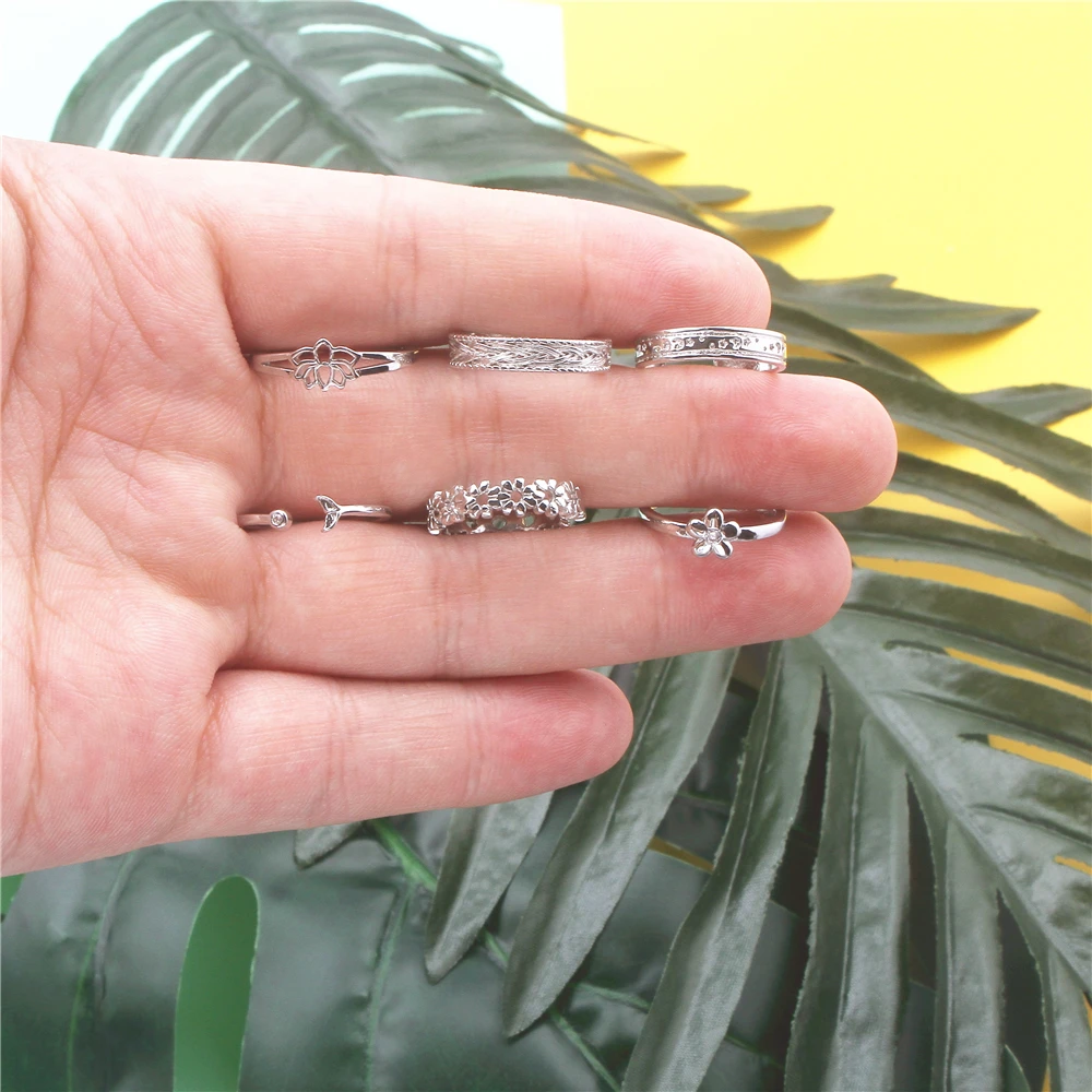 Набор колец с фианитом для женщин, регулируемые летние кольца в форме цветка и звезды, 6 шт., Подарочный ювелирные изделия в виде дельфинов