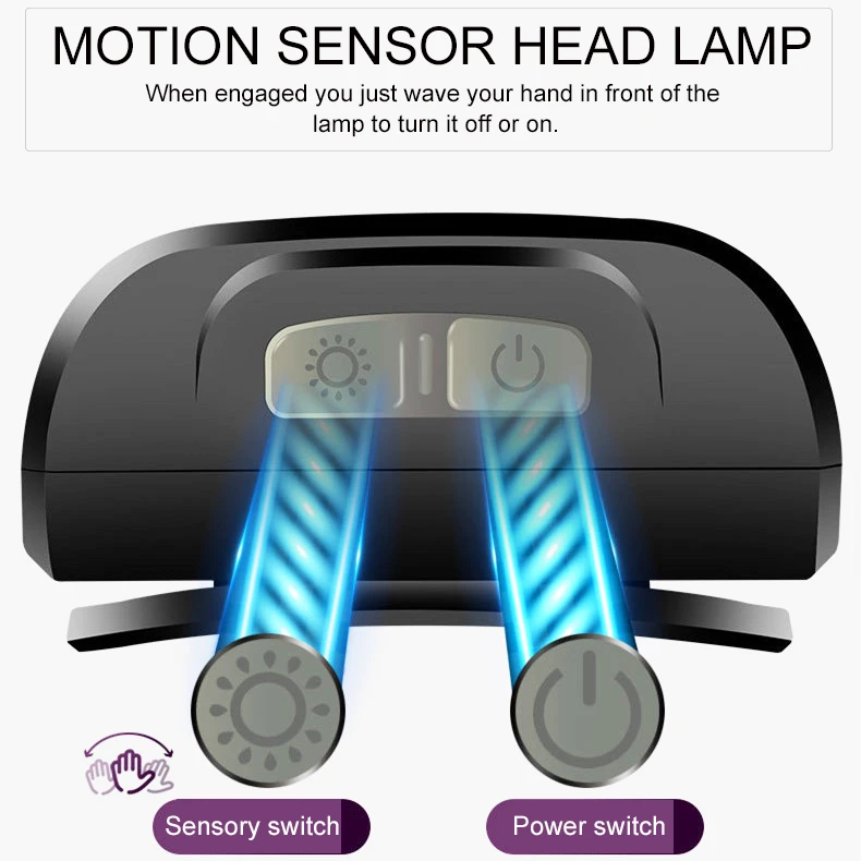 Мощный налобный фонарь с датчиком движения, водонепроницаемый Головной фонарь, зарядка через USB, спортивный головной светильник, передсветильник, 8000 Люмен
