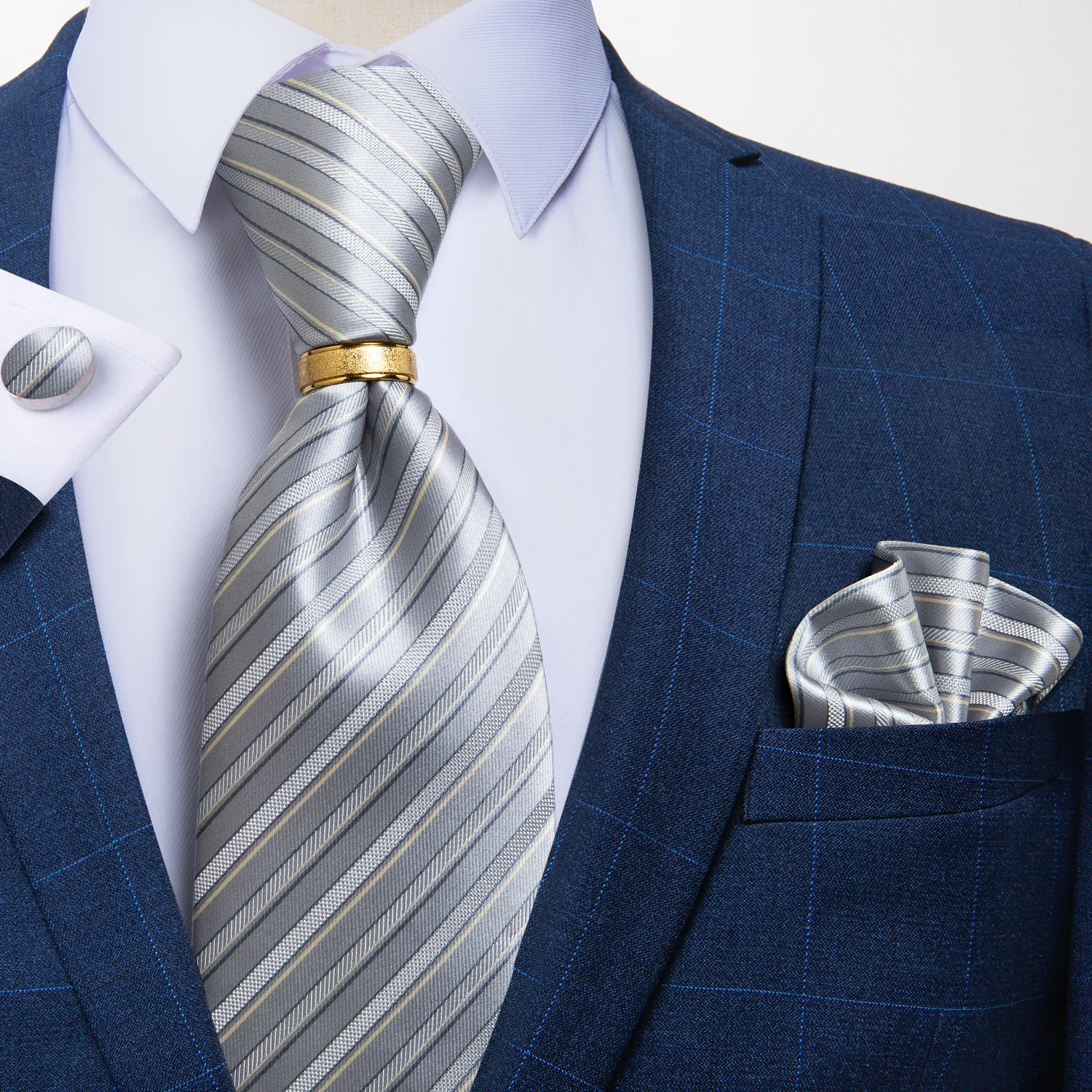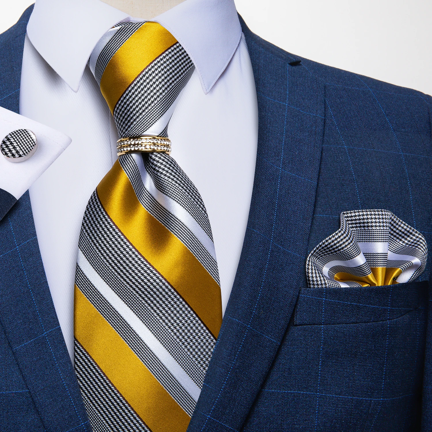 Роскошный желтый и белый шелковые галстуки в полоску для мужчин, классический деловой галстук для свадебной вечеринки, карманный квадратный комплект с кольцом