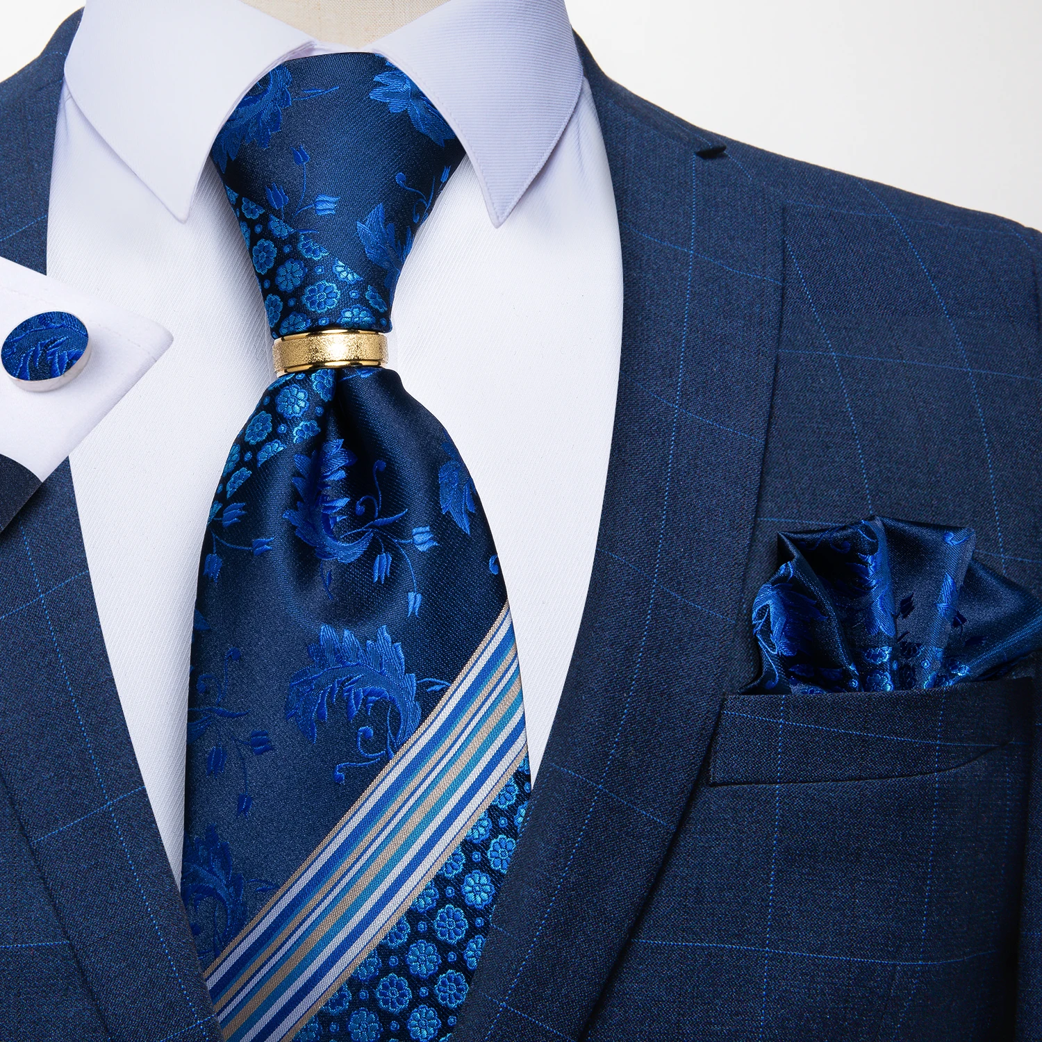 Мужской галстук, золотой, синий, красный, бирюзовый, с узором пейсли, Однотонный, Цветочный, качественный, Свадебный галстук для мужчин, галстук, кольцо, Hanky, запонки, шелковый галстук, набор, дизайн DiBanGu