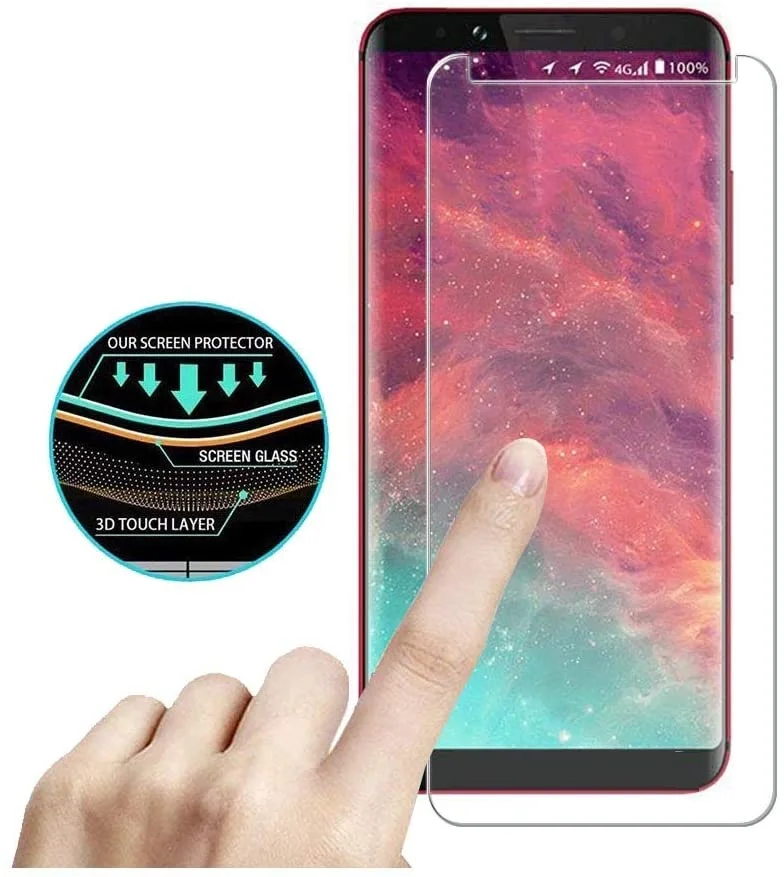 Дизайн меньше, чем экран телефона по краям, закрывает только плоскую область дисплея, чтобы соответствовать всем чехлам.