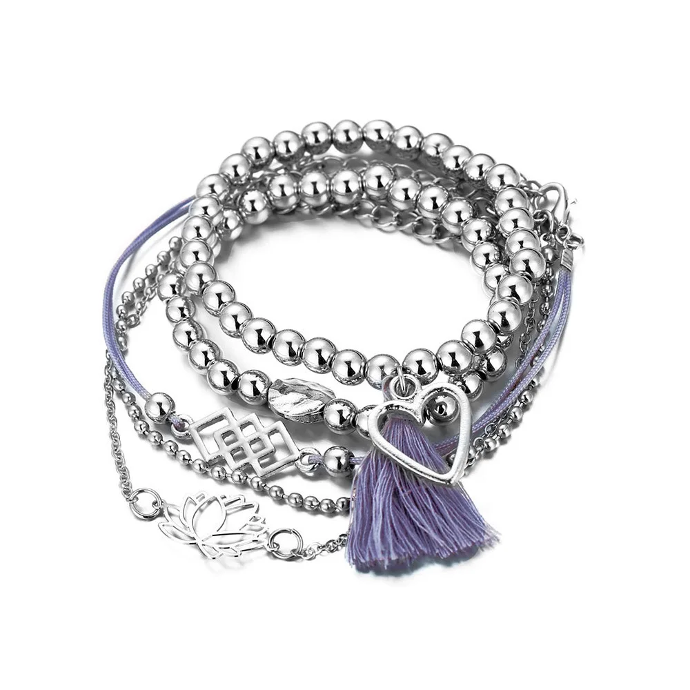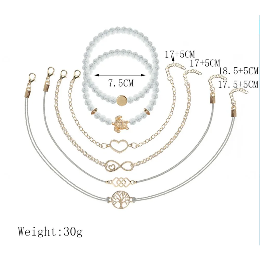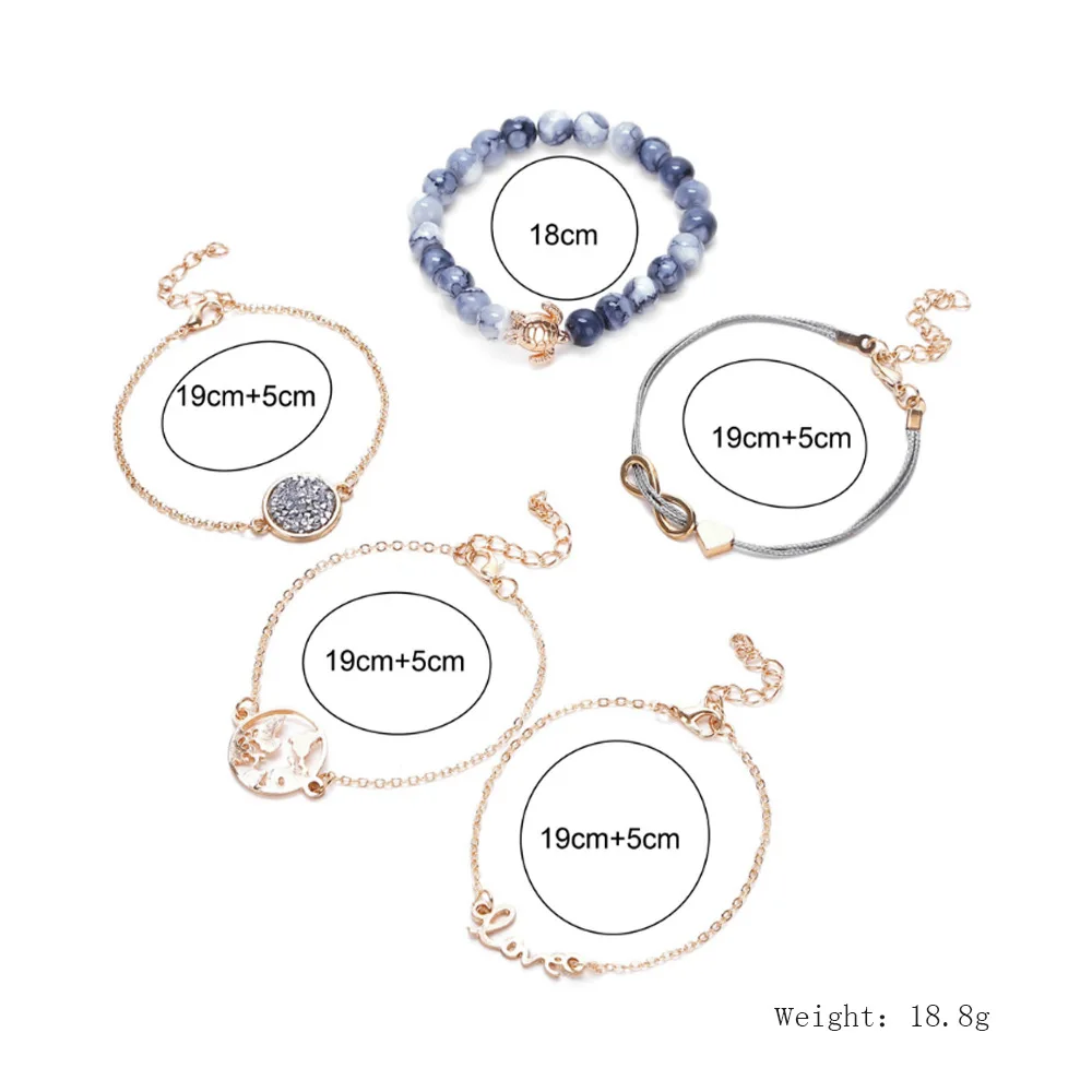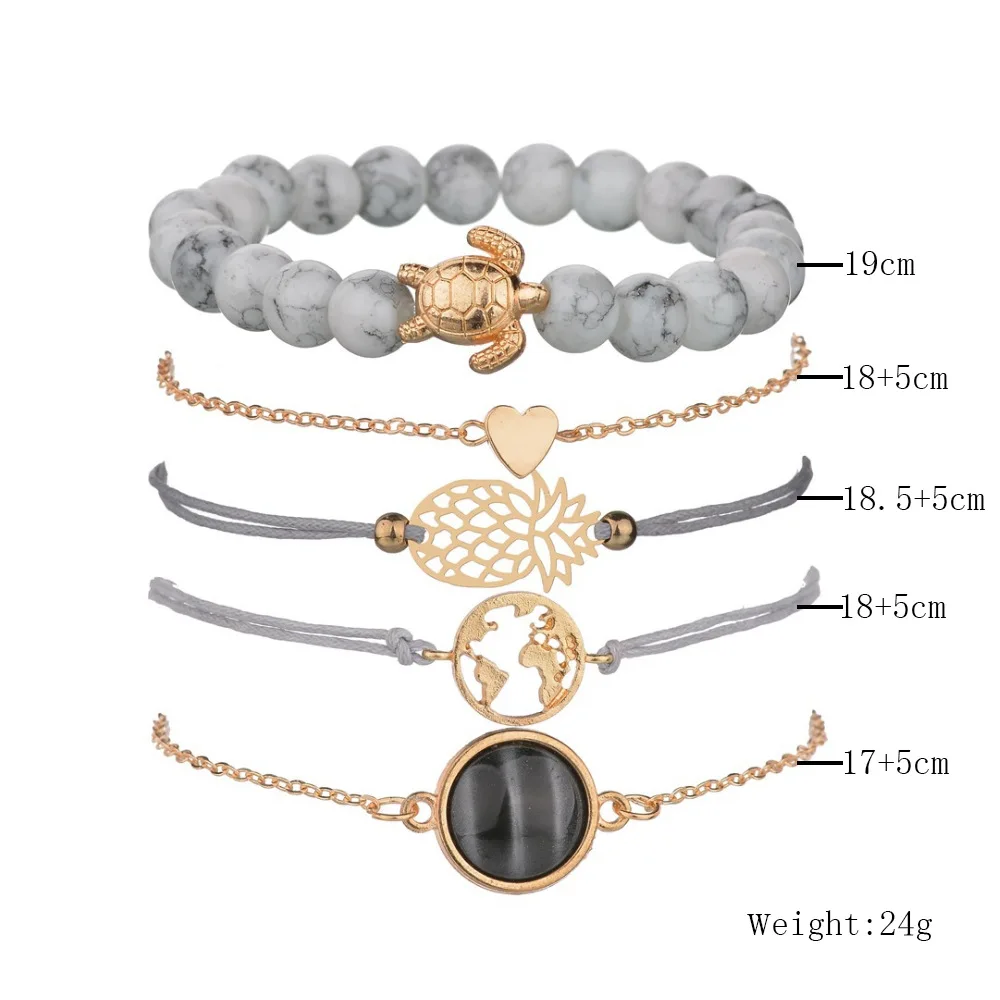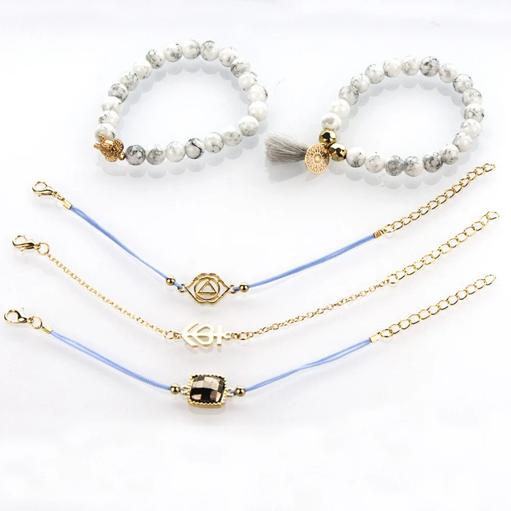 Богемный Набор браслетов KSRA для женщин, цепочка с кулоном из натурального камня, с геометрической ракушкой, звездой, картой, сердцем, ювелирные изделия в стиле бохо, 2020