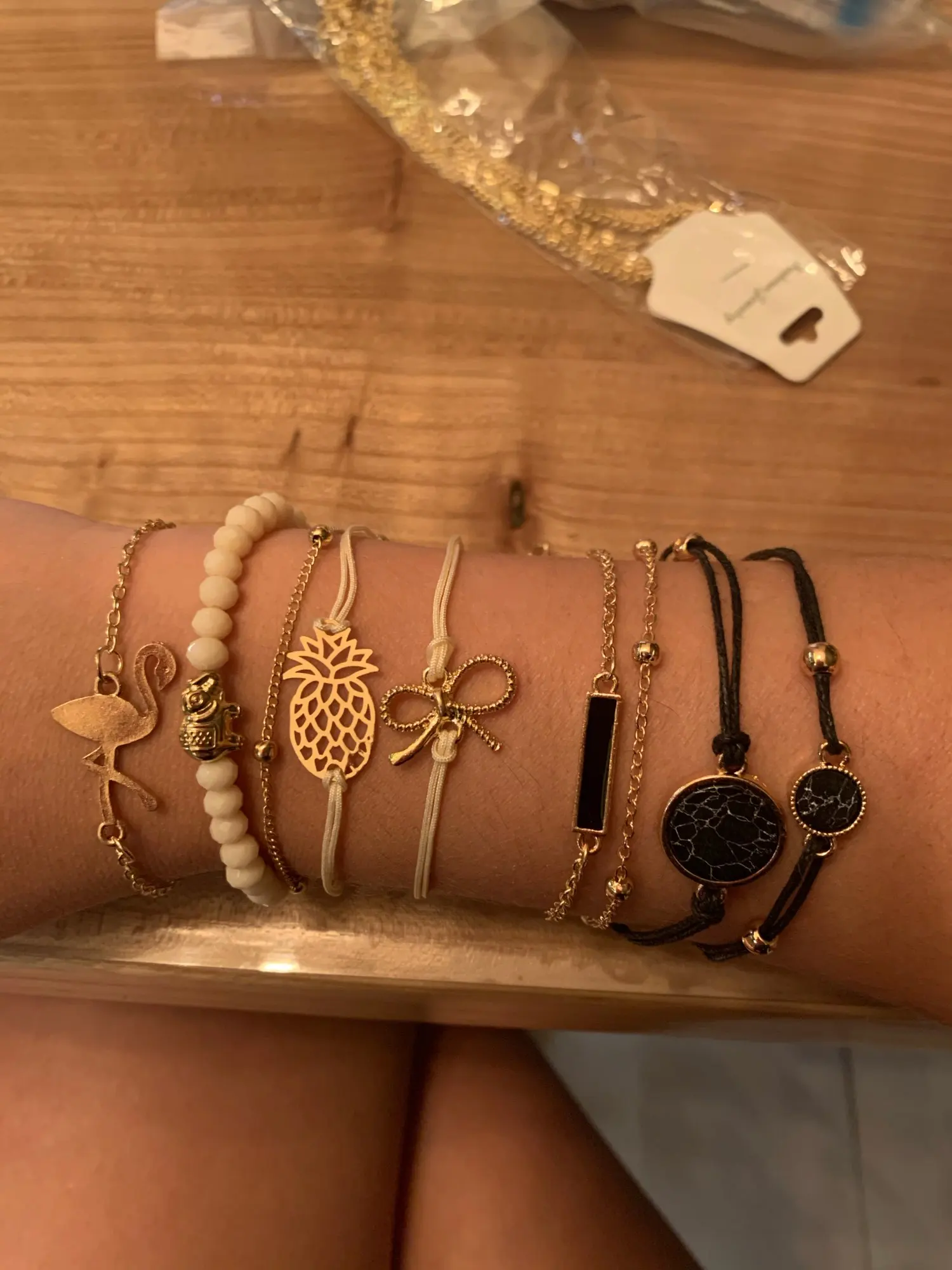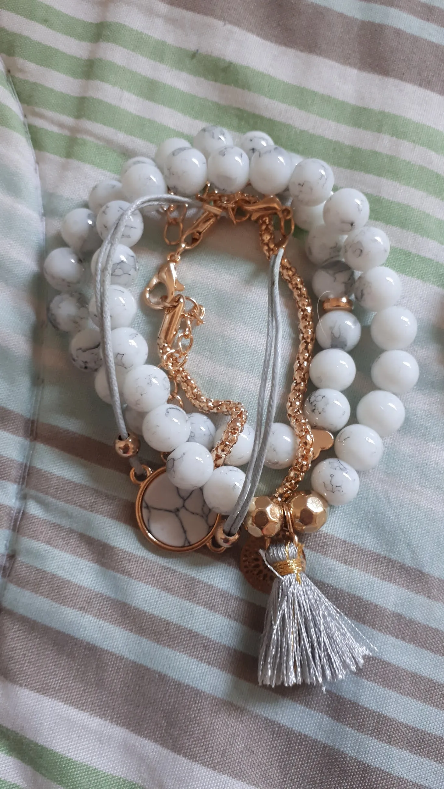 Красивые браслеты и сочетание цветов. Они просто слишком большие, поэтому браслеты не будут оставаться на месте, как на картинке. К сожалению, один из застежек был немедленно сломан, когда браслет был закреплен. Может быть, я все еще смогу надеть на это старое закрытие себя .. В противном случае стыд