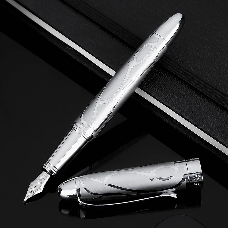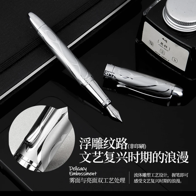Ручка перьевая HongDian из нержавеющей стали с тонким наконечником, в стиле ретро, серебряная, для студентов, офисных тренировок, канцелярские принадлежности, подарок