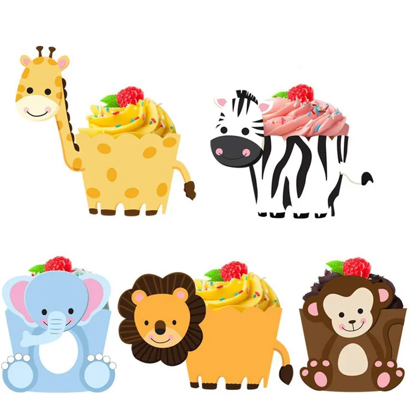 12 шт.лот, обертки для капкейков с изображением зебры, Льва, слона,...