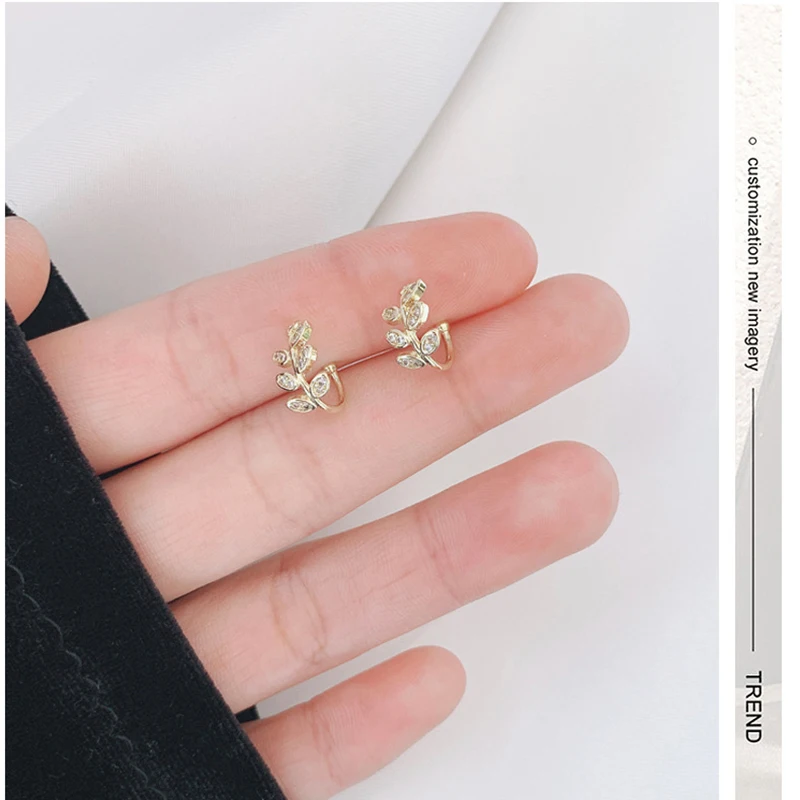 Модные серьги-клипсы с хрустальными золотыми листьями, серьги-клипсы для женщин, без имитации пирсинга, Хрящевые серьги, ювелирные изделия для вечеринок, оптовая продажа