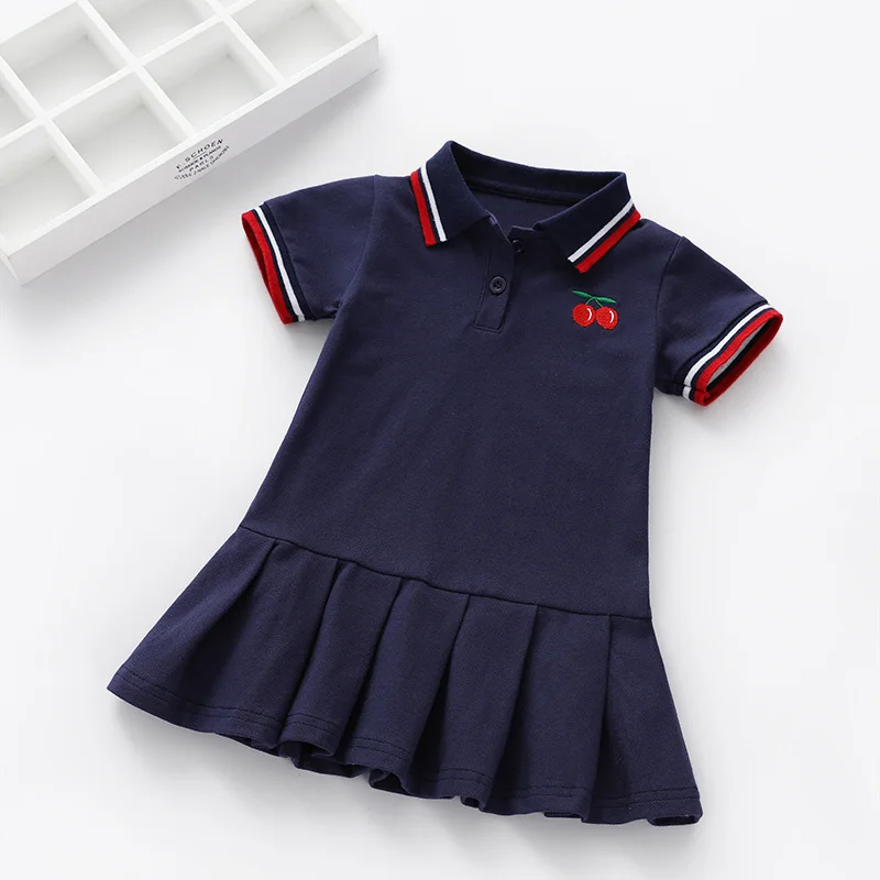 Летнее платье для девочек, Новое Детское плиссированное платье-поло, платье с коротким рукавом в студенческом стиле WT26