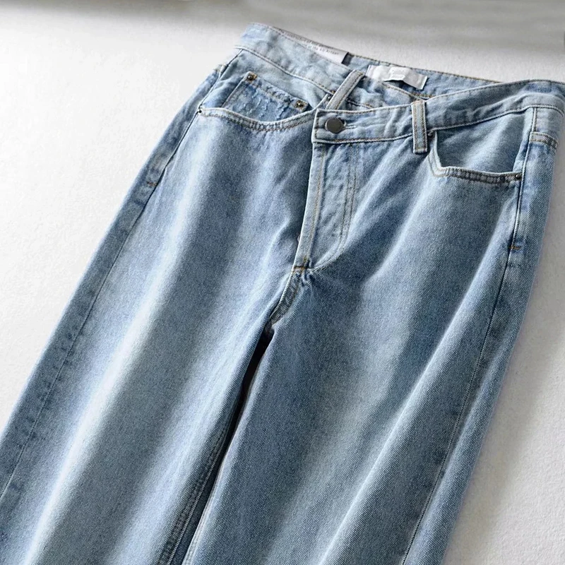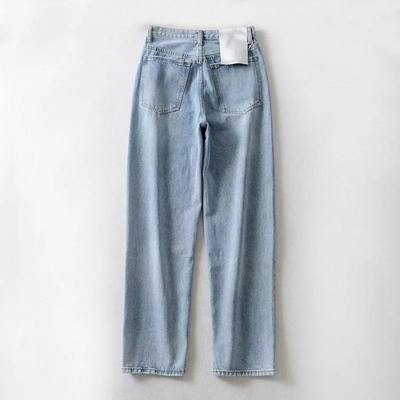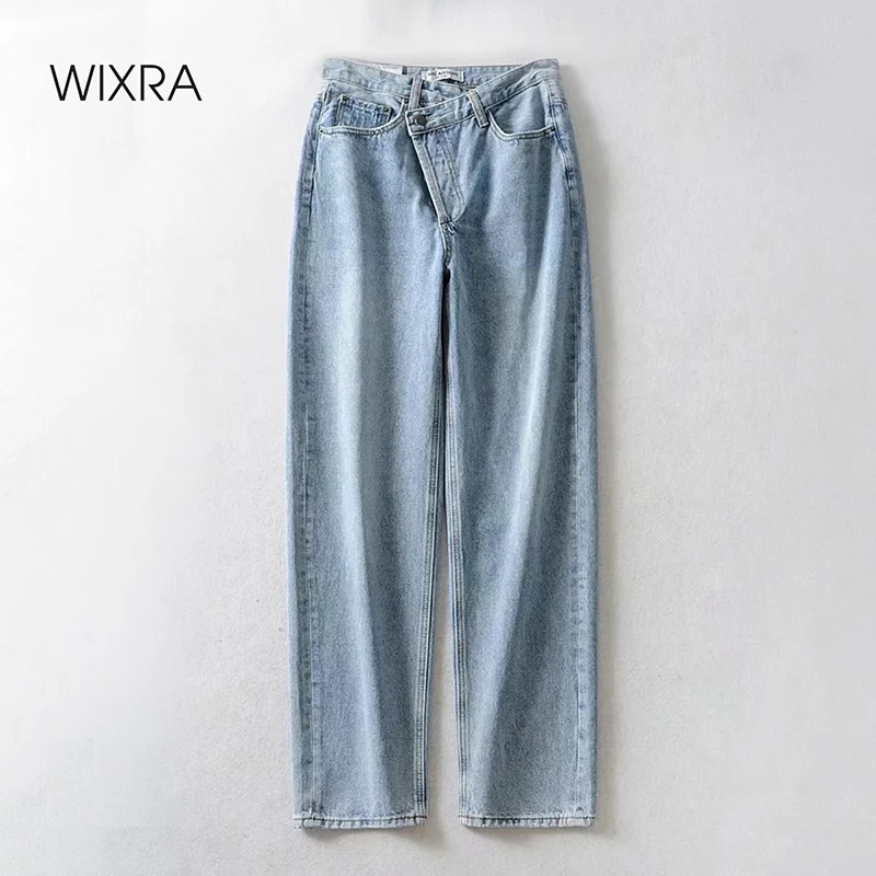 Женские джинсовые брюки Wixra, повседневные свободные винтажные прямые джинсы с высокой талией и карманами в Корейском стиле, джинсовые брюки полной длины