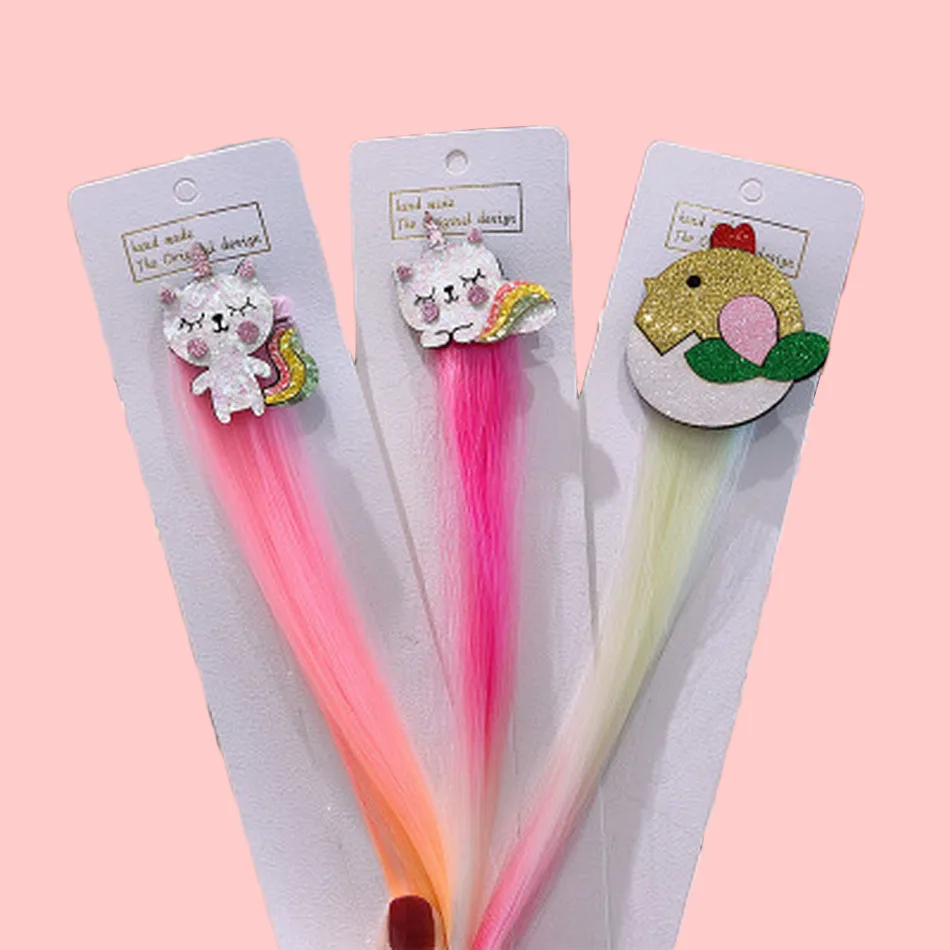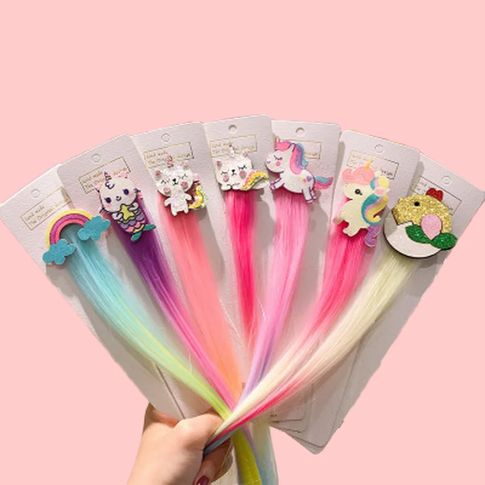 2020 Kawaii парик Ленточные заколки для маленьких девочек детские поддельные краска волосы Твист коса цветные украшения детей цветные пряди для волос детям аксессуары заколка на волосы для детей