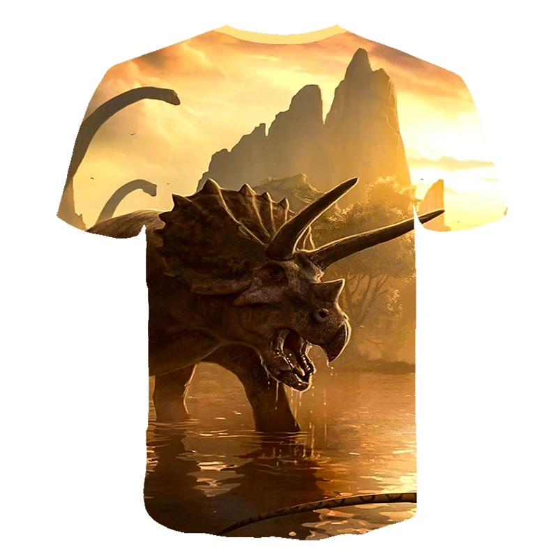 Летняя брендовая новая детская футболка с животным динозавром 3D футболка для мальчиковдевочек Детские футболки с коротким рукавом Повседневные детские Топы Одежда