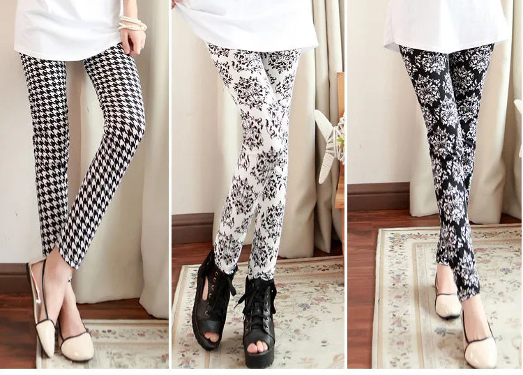 Женские леггинсы с цветочным принтом LJCUIYAO, эластичные винтажные леггинсы с рисунком гусиные лапки, распродажа