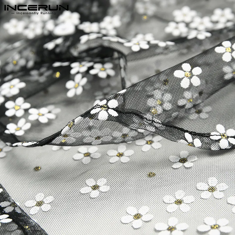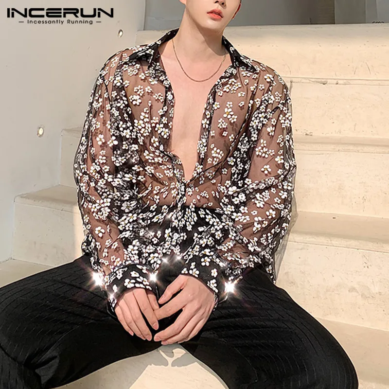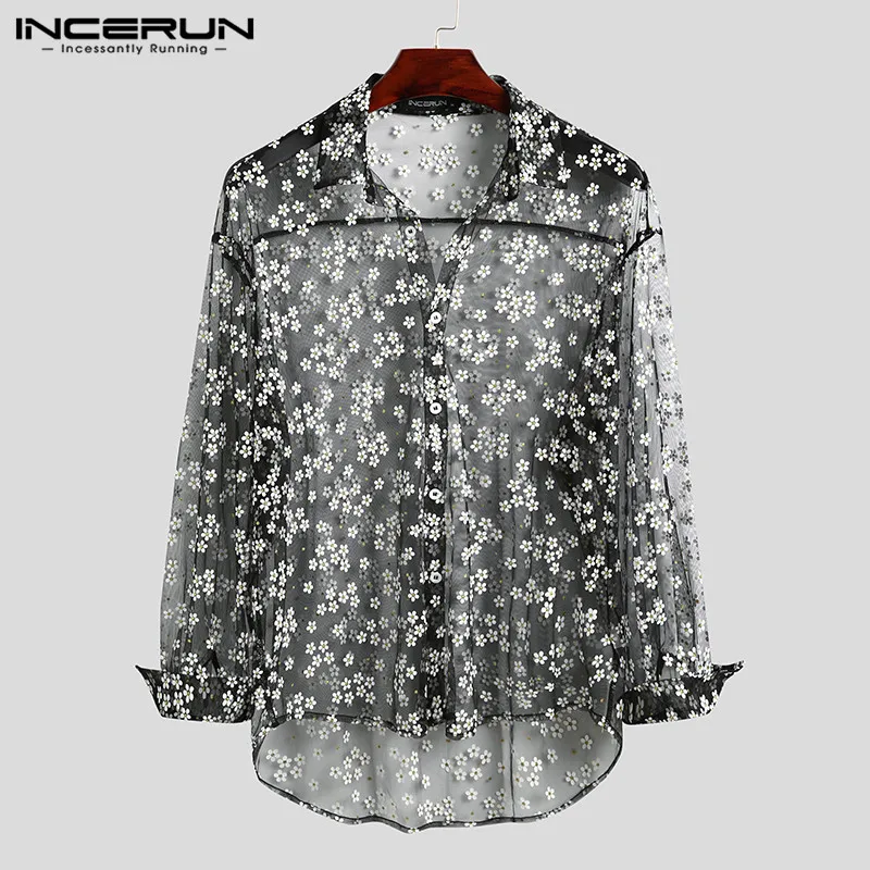 Модная мужская сетчатая рубашка INCERUN с длинным рукавом, прозрачн...