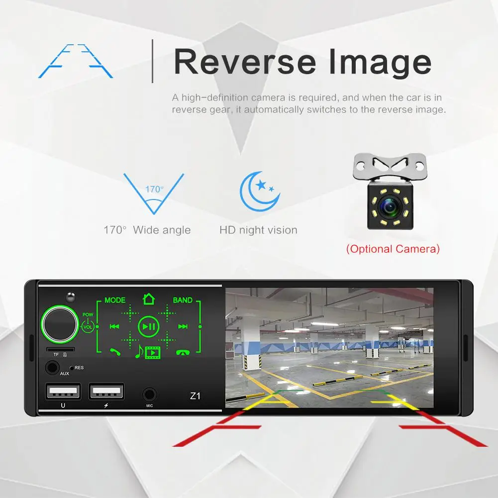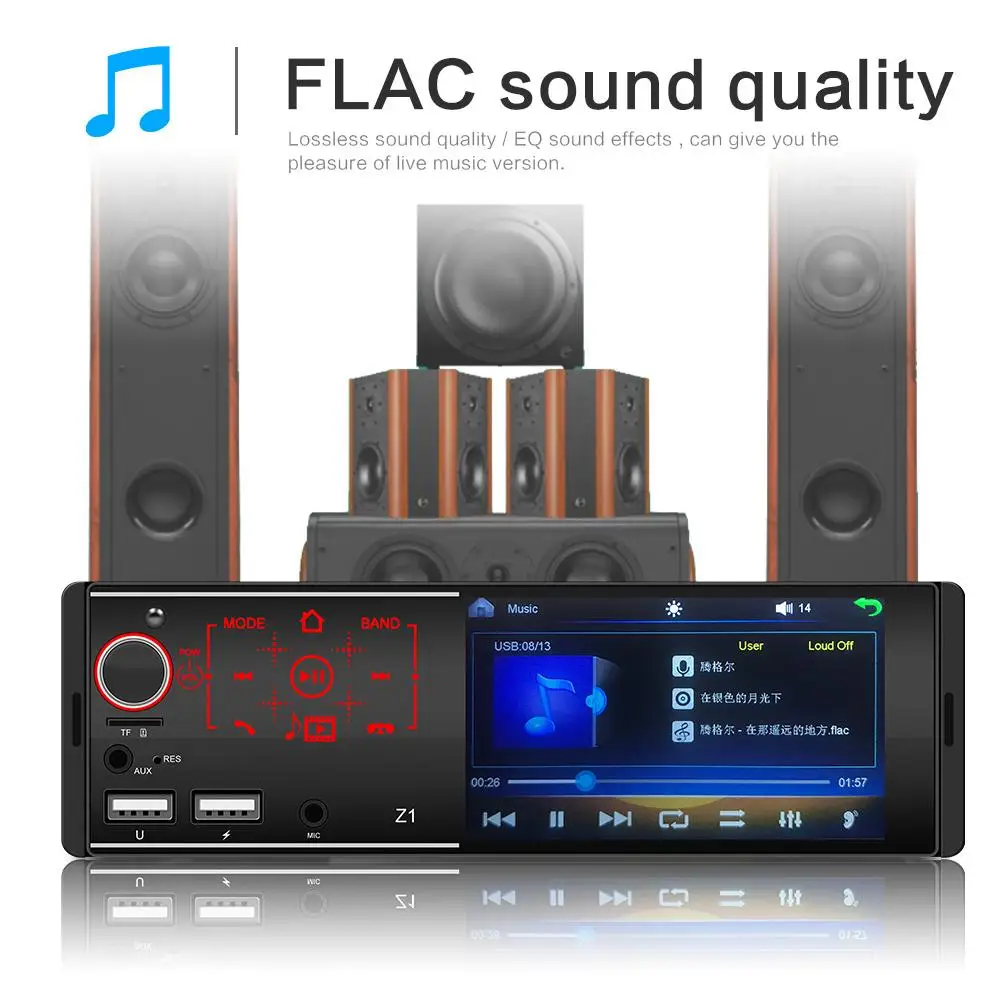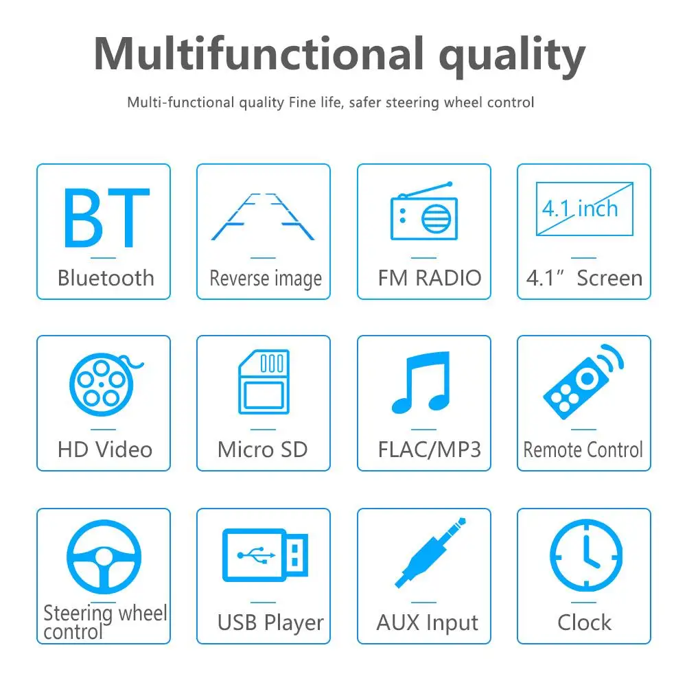Автомагнитола MP5, MP5-плеер с сенсорным TFT экраном 4,1 '', Bluetooth, Aux-inUSBFM, 1080P HD-видео, Типоразмер 1 Din