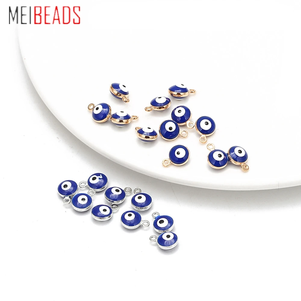 MEIBEADS 30 шт.лот бусины сглаза ручной работы, бусины голубой глаз, золотистые соединители, латунный ободок, браслет, ожерелье, подвески UF5685
