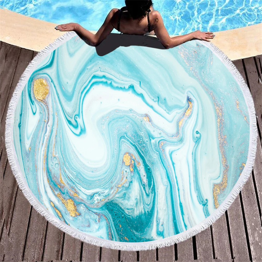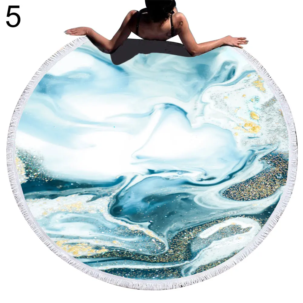 Круглое пляжное полотенце из микрофибры с абстрактным рисунком, большой акварельный Коврик для йоги с кисточками, пляжный коврик, покрывало для пикника