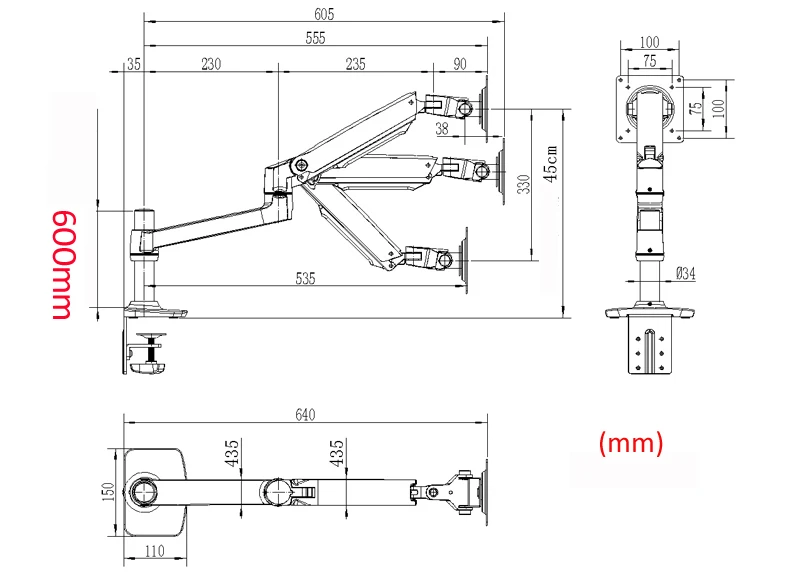Поворотный кронштейн: -180 ° ~ + 180 °