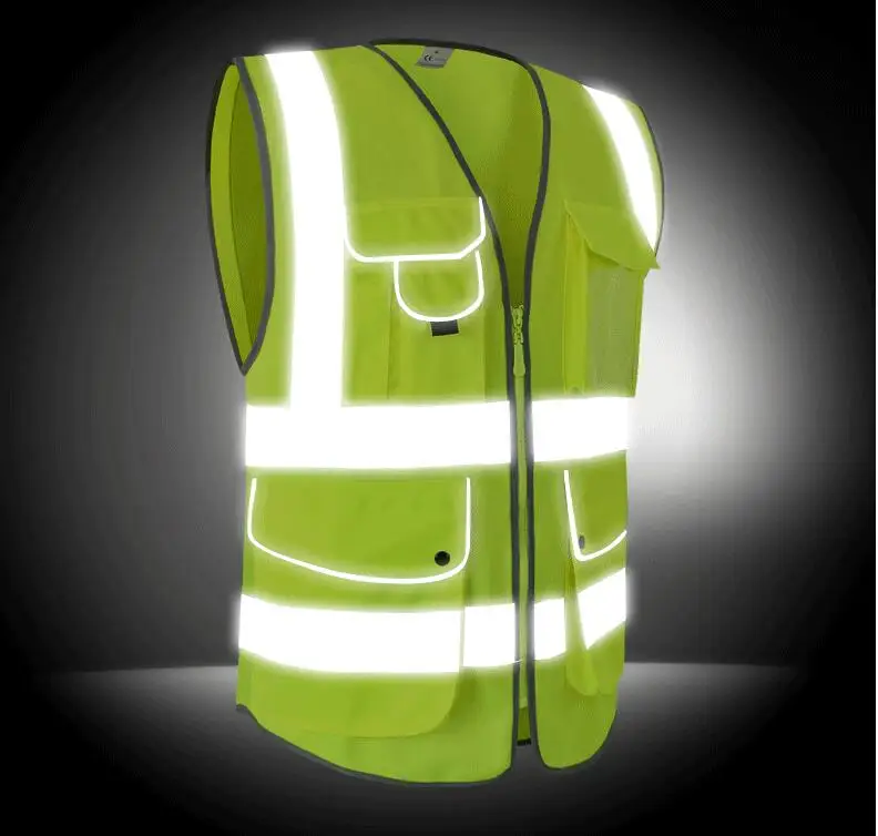 Флуоресцентный оранжевый жилет безопасности с карманами, застежка-молния спереди, светоотражающий жилет безопасности со светоотражающими полосками
