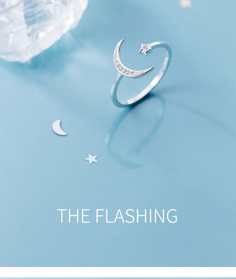 Женское облегающее кольцо Modian из настоящего серебра 925 пробы с мерцающим цирконием, со звездой, луной, хороший подарок на свадьбу, ювелирные изделия свободного размера