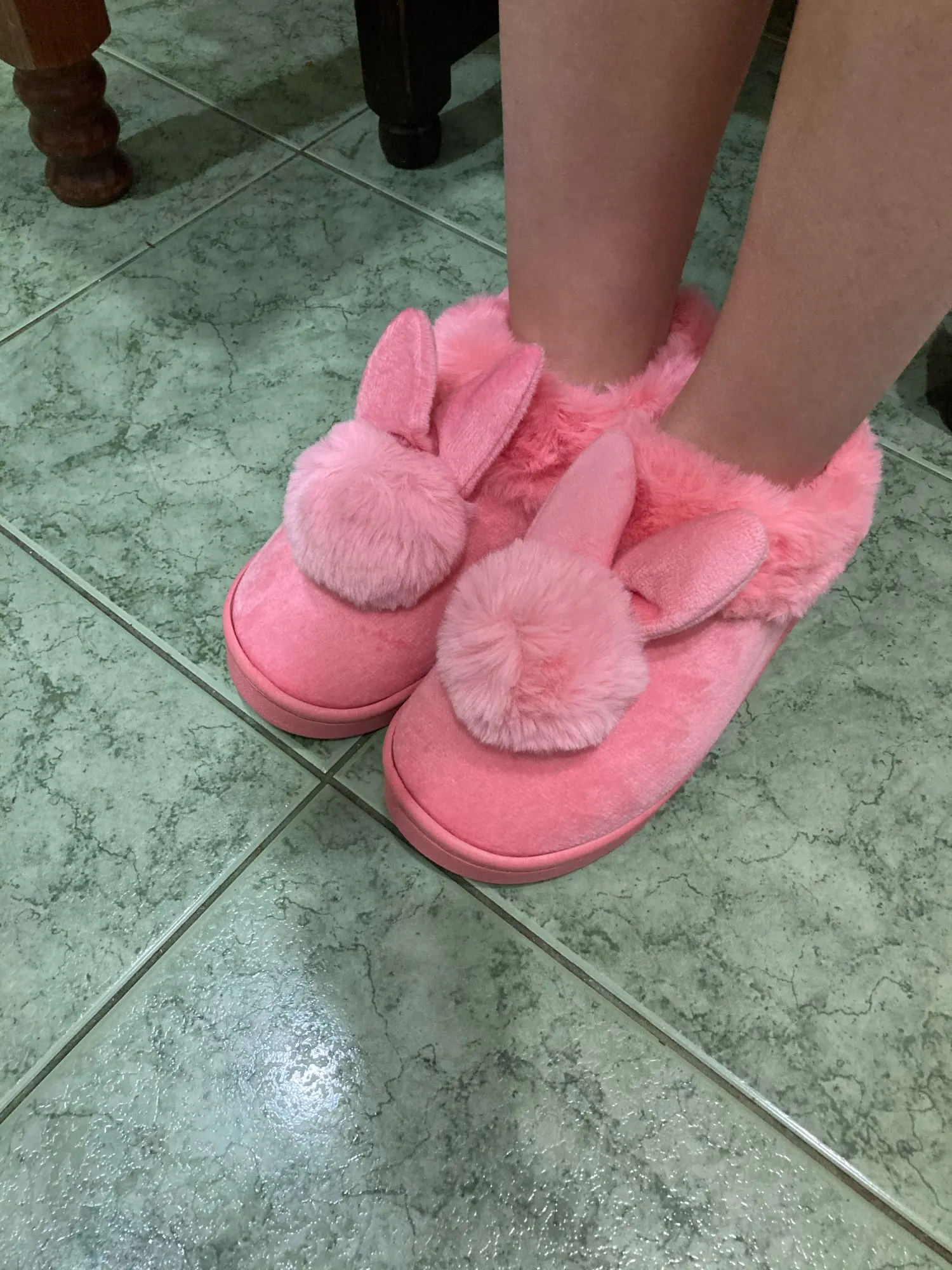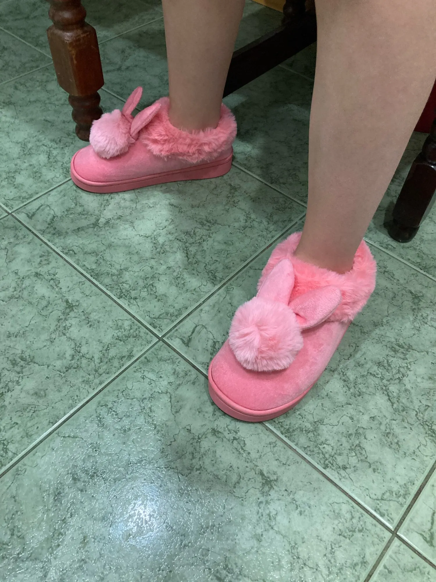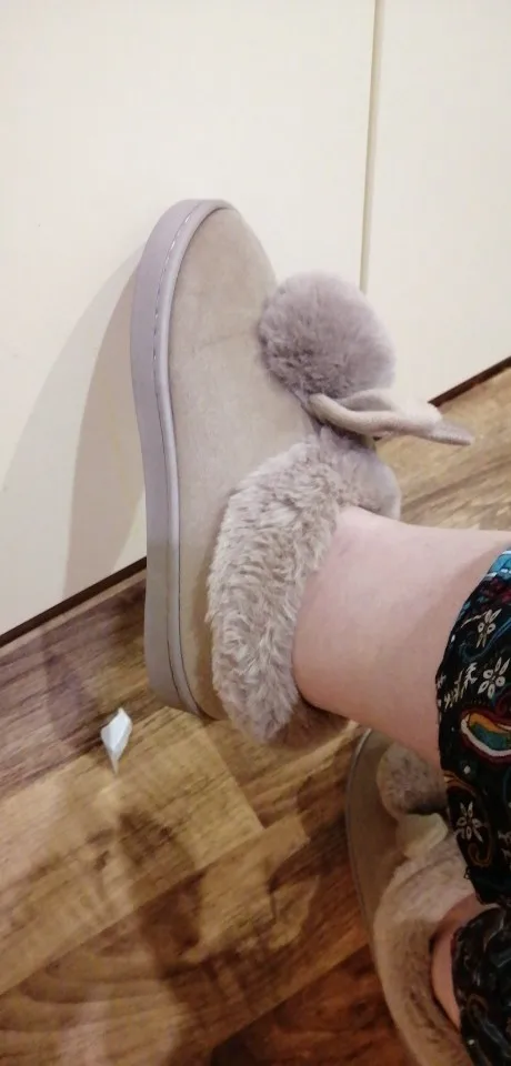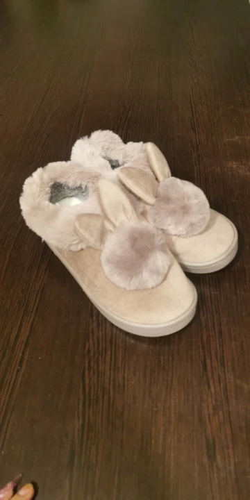 Товар шёл долго! Это минус. Но тапочки очень милые,няшные для подростка 13лет брали размер 39 но всё равно немного мал. У китайцев ноги меньше чем у нас по этому берите на размер обуви больше! А так товаром довольна тапочки тёплые!