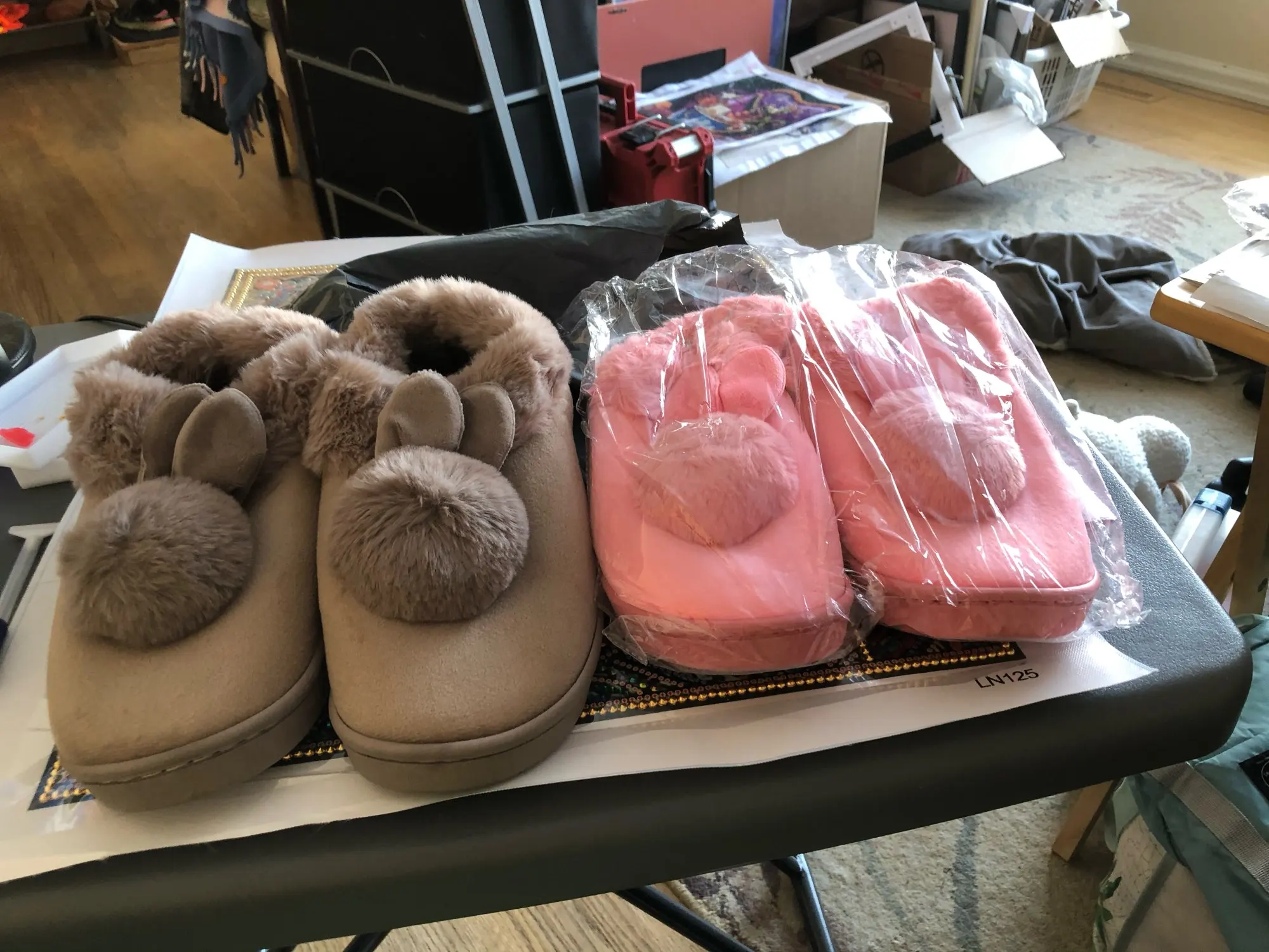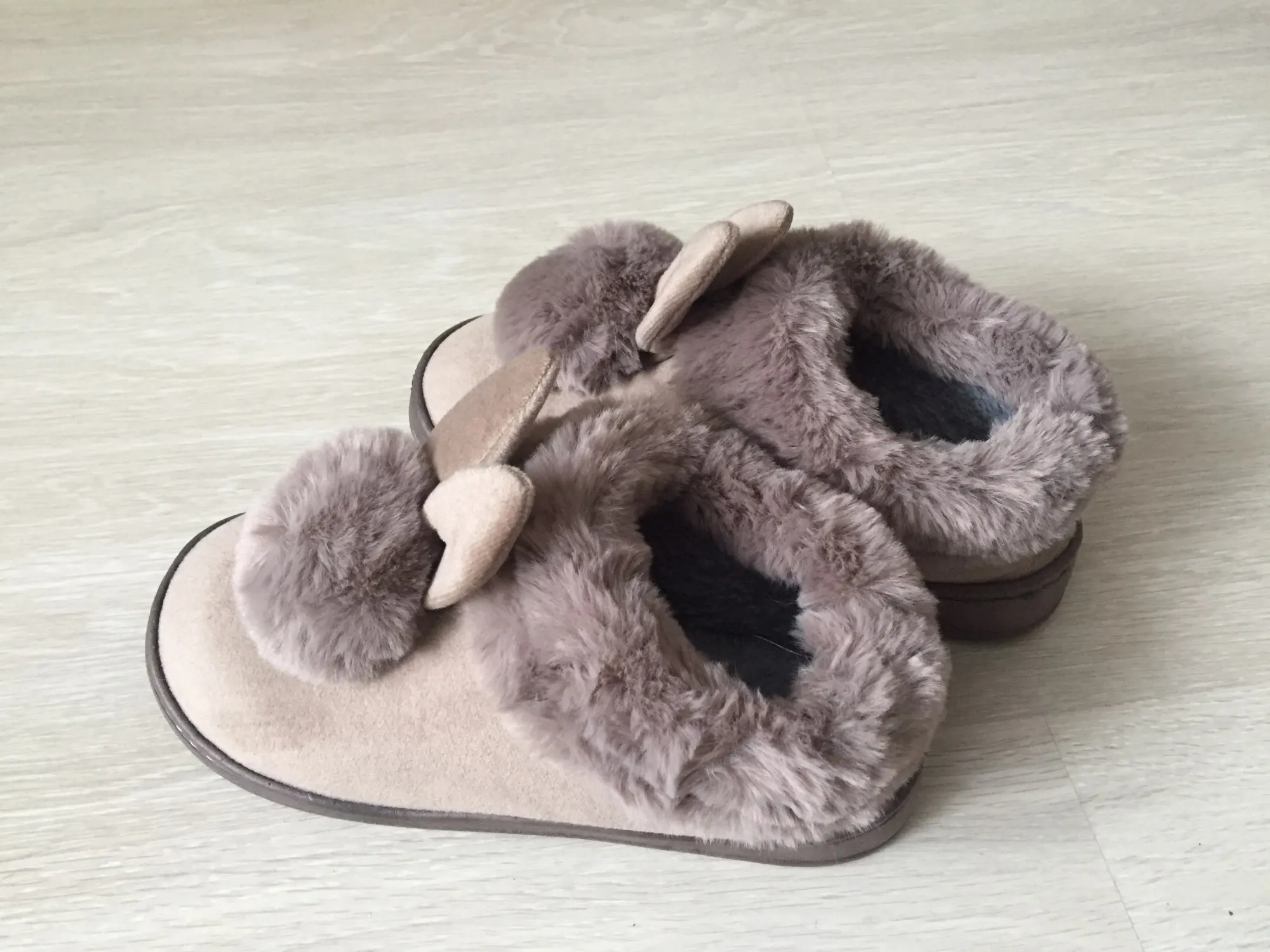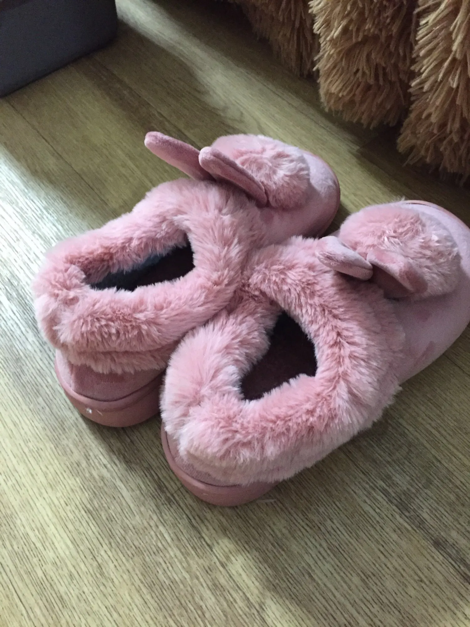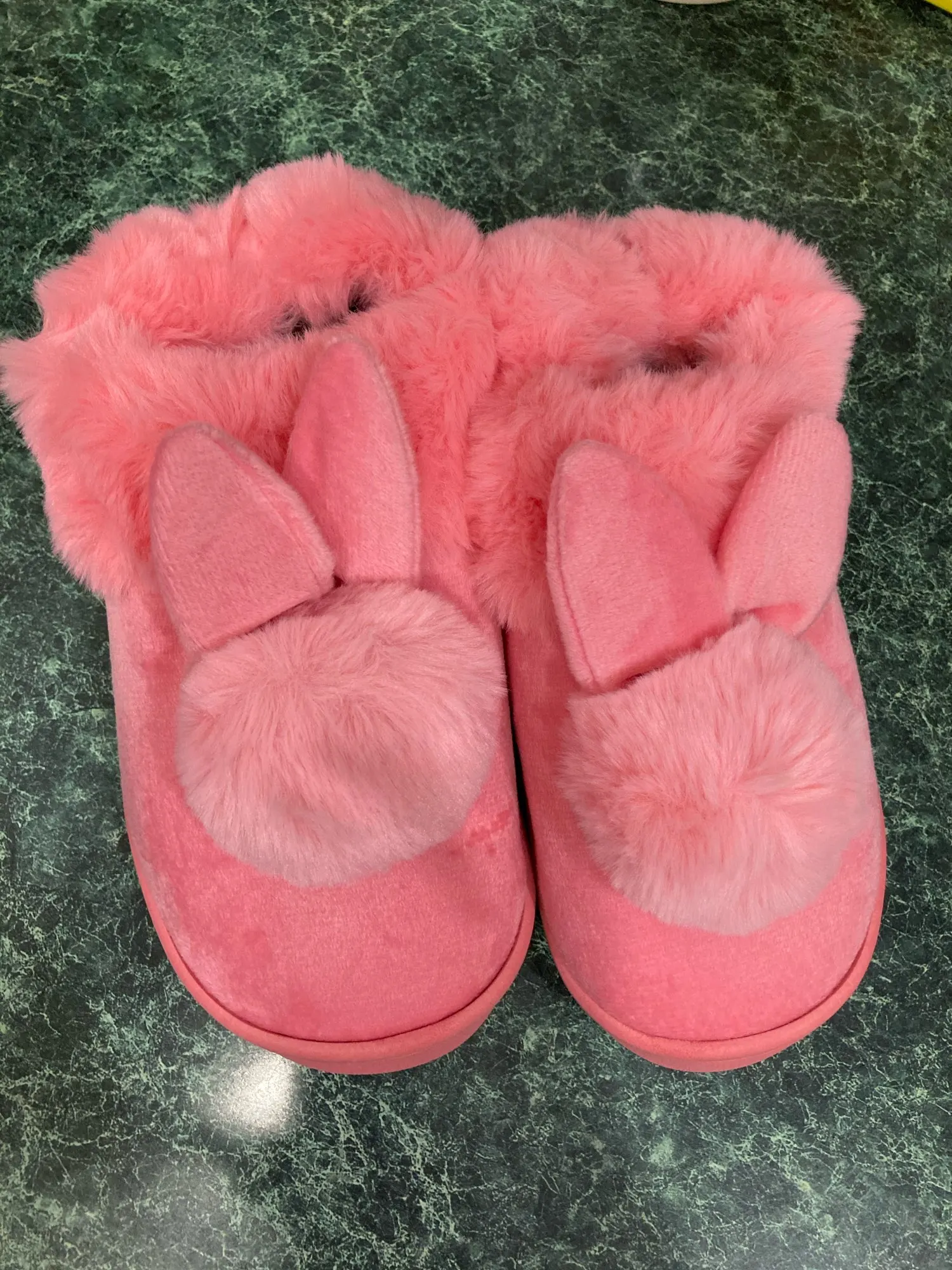 Товар прибудет в течение 3 недель в Германию. Тапочки мягкие и теплые. Вы можете работать очень хорошо. Дизайн кролика также милый. Я могу сделать изделие очень рекомендуемым.