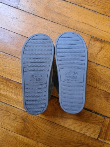 Эти тапочки серьезно удобны! Подошва толстая и хорошего качества. Есть небольшие дефекты отделки, но по цене это того стоит. Они слишком милые. Я взял 38, но это маленький 38! Я рекомендую размер выше. Цвет обуви: серый