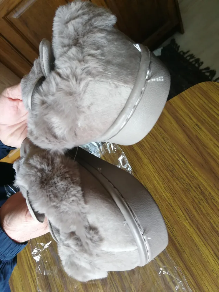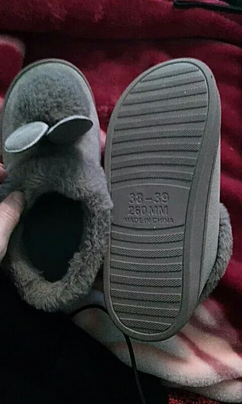 Выглядит довольно мило! Пушистый наизнанку! Действительно теплый и уютный. Я ношу 36-37 европейский размер, и я получил 38-39, и он идеально подходит также, чтобы носить некоторые носки. Действительно мило! Я очень доволен! Они прибыли около 40 дней после заказа.