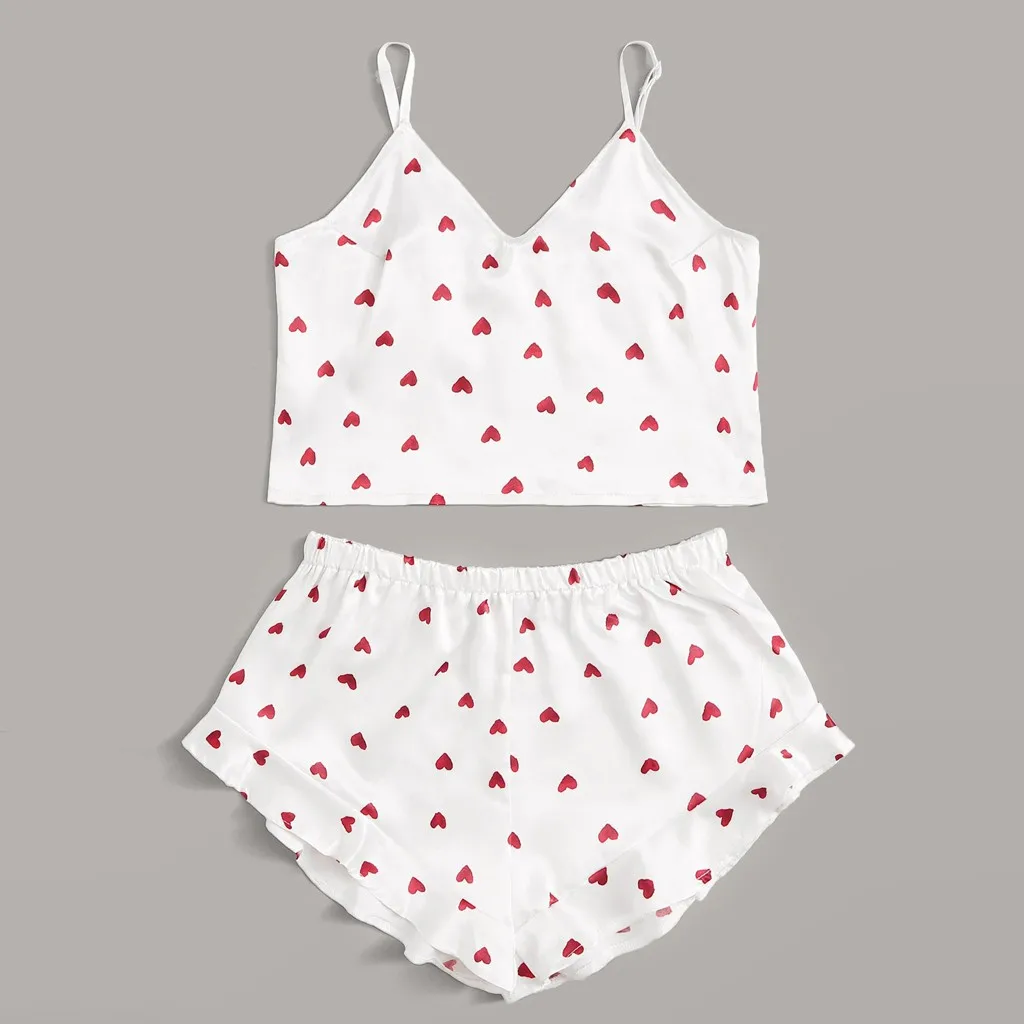 Женская пижама с принтом сердечек, летняя Пижама, сексуальный пижамный комплект, майка и шорты, одежда для сна # YJ
