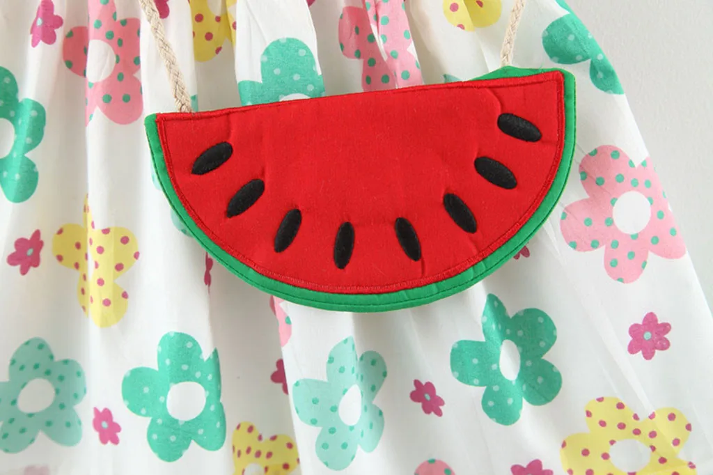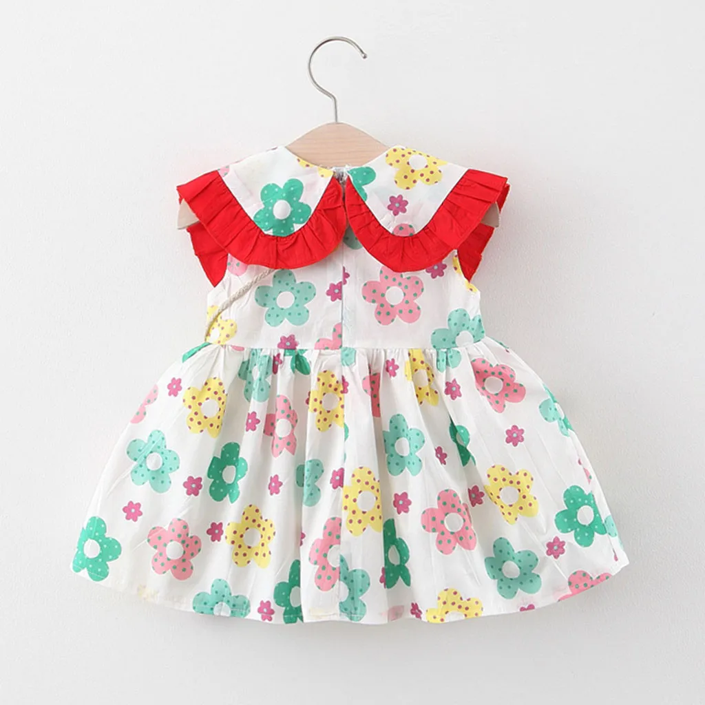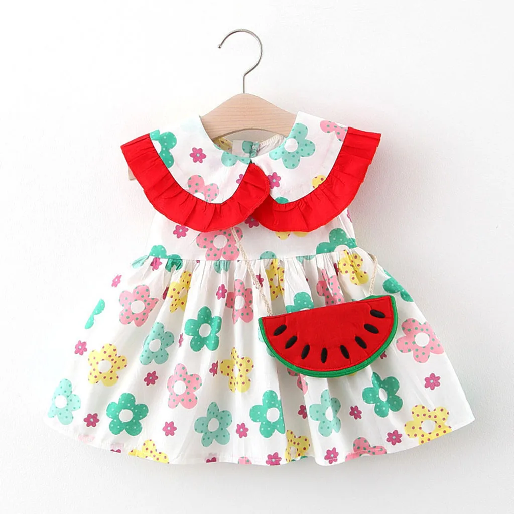 (От 6 месяцев до 3 лет) летнее платье для девочек, корейское платье принцессы без рукавов с кукольным воротником, цветочным принтом, арбузом и сумкой, мотоциклетное, 50 *